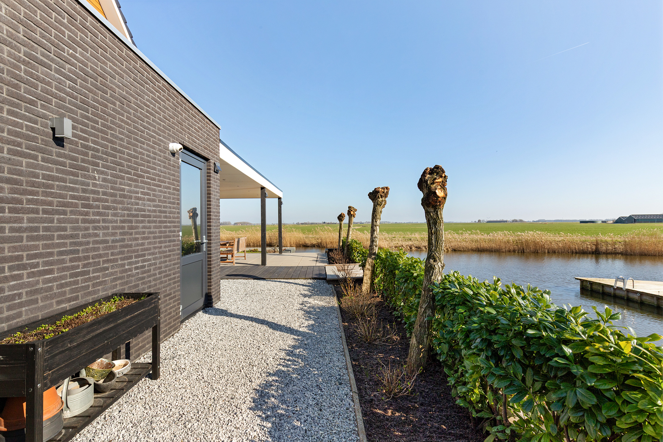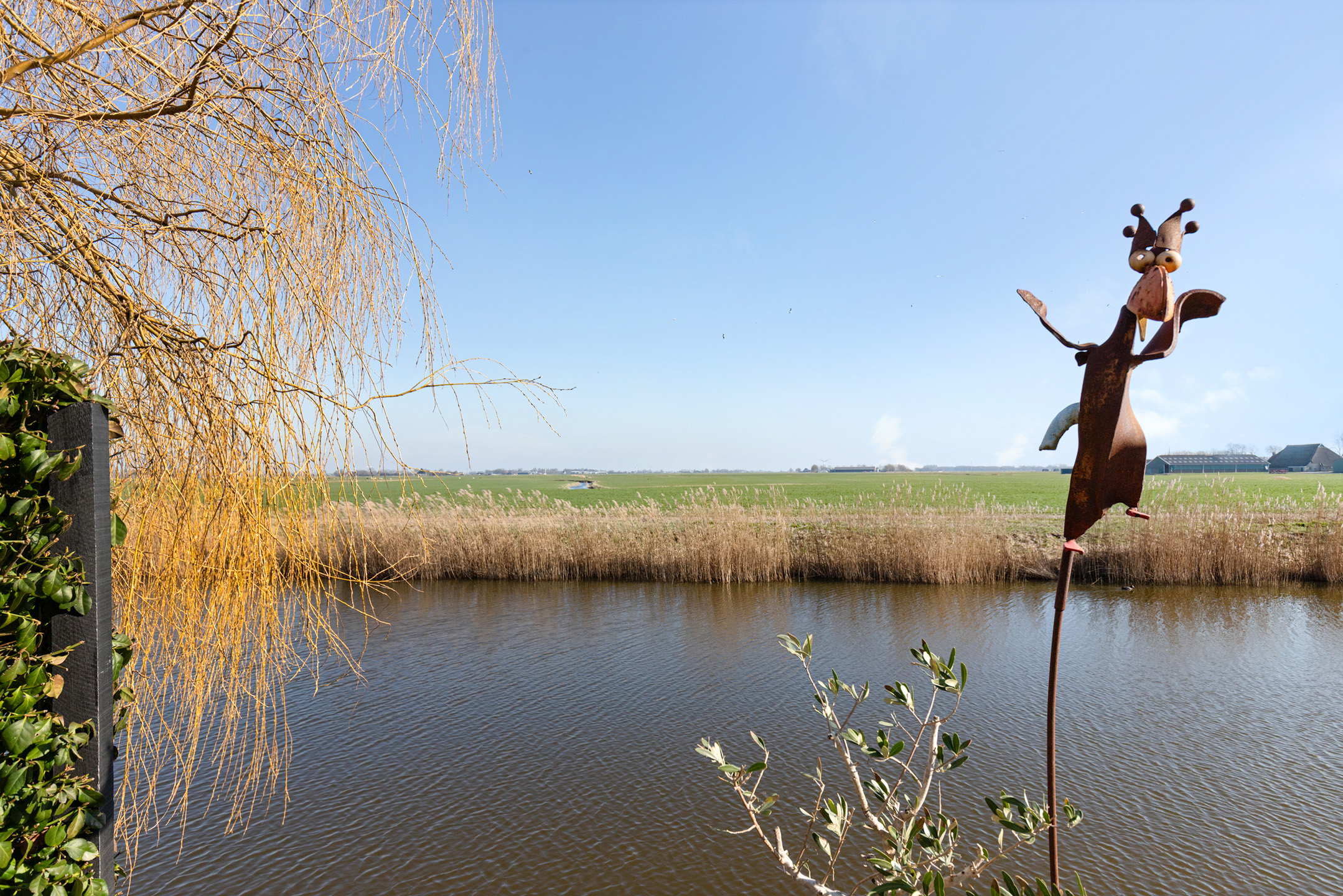 Here, you can enjoy Frisian flora and fauna at its best: sheep grazing, birds of prey, meadow and water birds, and ever-changing skies, this spectacle never grows old. The garden offers sunny and shaded areas; the lawn, flowering borders, pollard willows, and a hydrangea hedge create a serene oasis.