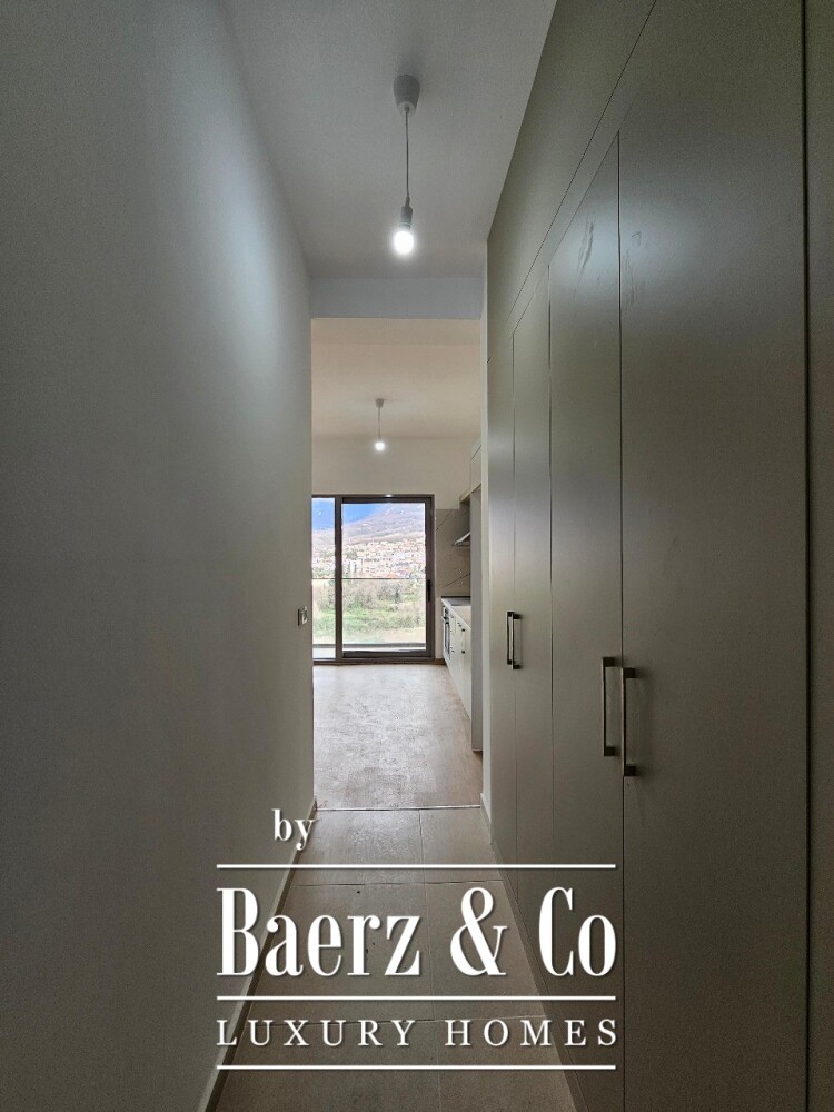 The apartment is delivered with completed tiles and floors, a fully equipped bathroom, and air conditioning, offering an immediate sense of comfort. Residents may access a communal pool and children’s playground within the project, with private garage parking available for €25,000. Connectivity is ensured by direct asphalt roads, and travel is uncomplicated with Tivat, Dubrovnik, and Podgorica airports all within easy reach.