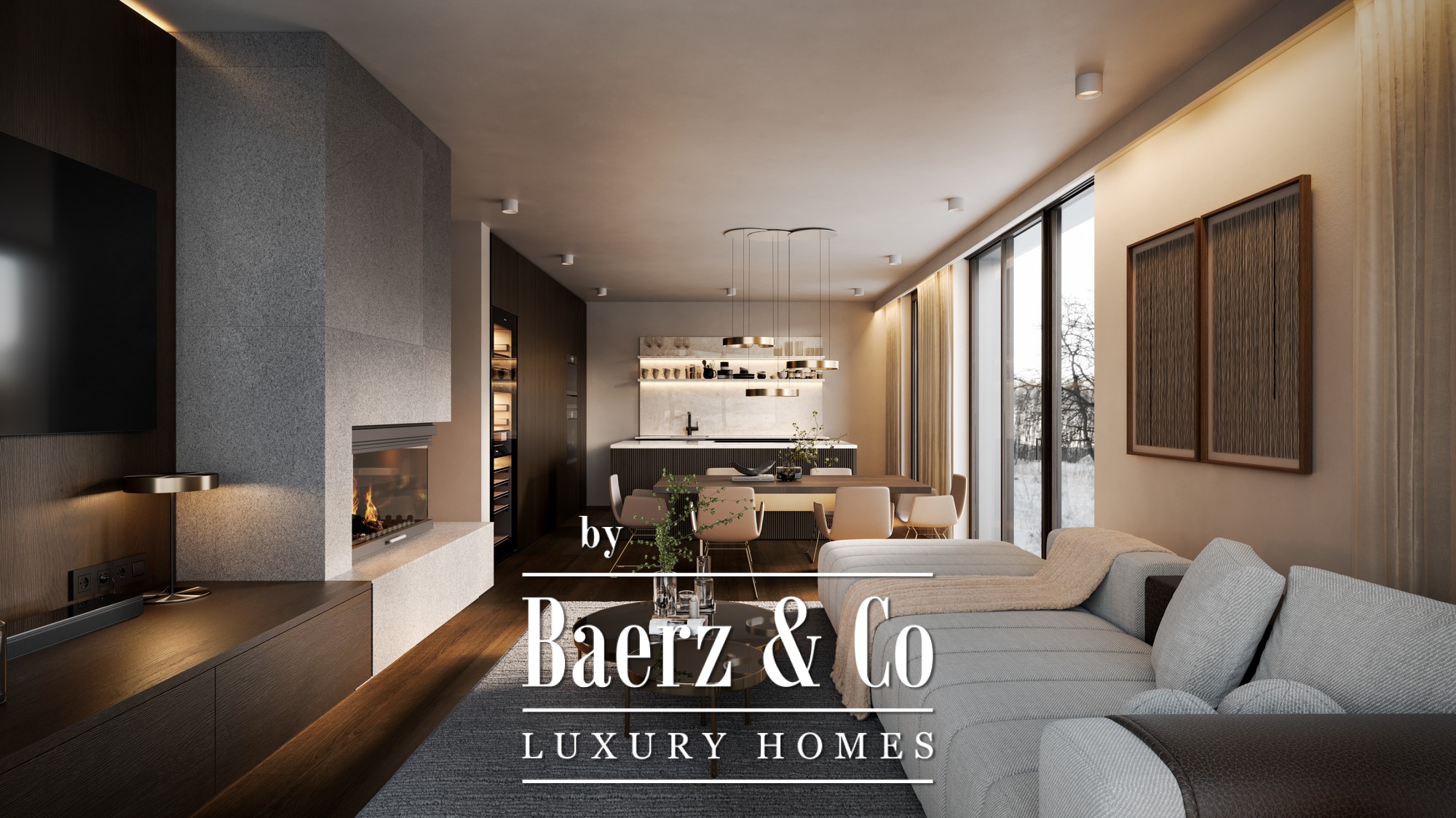 These three-bedroom apartments feature open-plan kitchens equipped with Miele and Bora appliances, complete with a wine cabinet, naturally flowing into expansive living spaces. Each unit includes a balcony of approximately 20 m² and cellar storage of 6 m². An infrared sauna offers private relaxation, while one underground parking space per apartment is included, with additional parking available to purchase.
