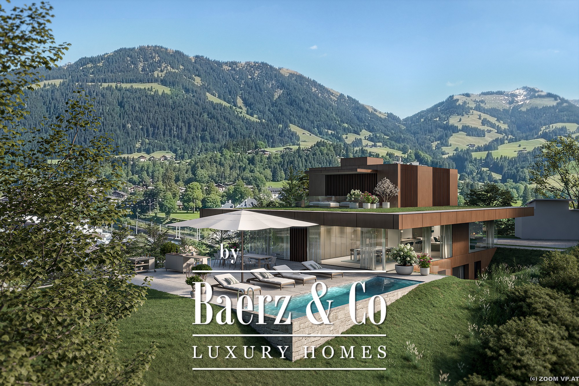Land plot Kitzbühel offers a rare opportunity for those who prize privacy and elevated living. This secluded plot of approximately 2,444 m² sits atop a tranquil hill in the heart of Kitzbühel, harmonizing seclusion with proximity to the town center. The property is sold with legally binding permits for an architect-designed villa, including plans for a three-story residence with outdoor pool, elevator, spa, and an underground garage for five vehicles. Panoramic views of the Hahnenkamm, Wilder Kaiser, and Kitzbühel Alps define the horizon, imbuing each day with a sense of place and grandeur.