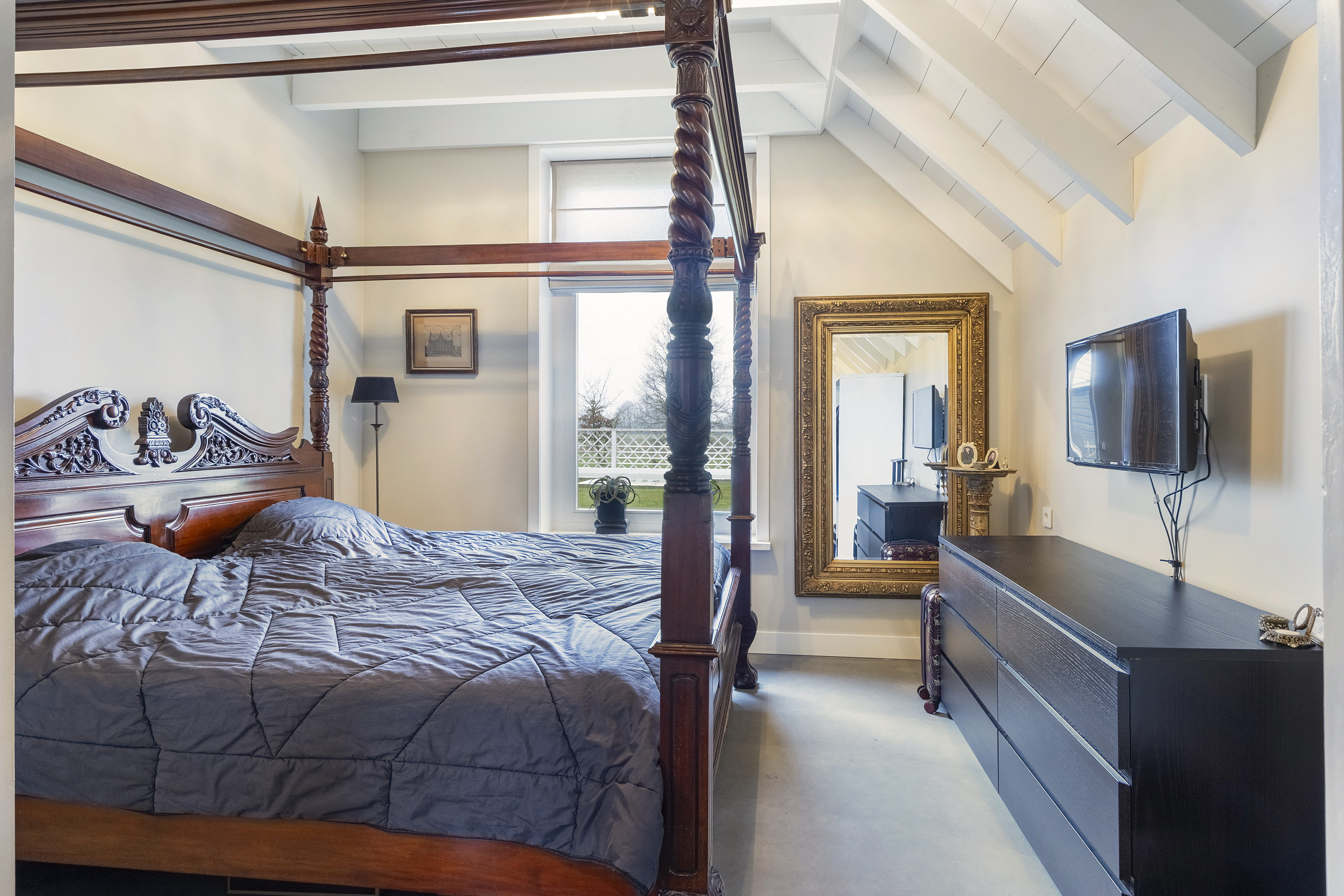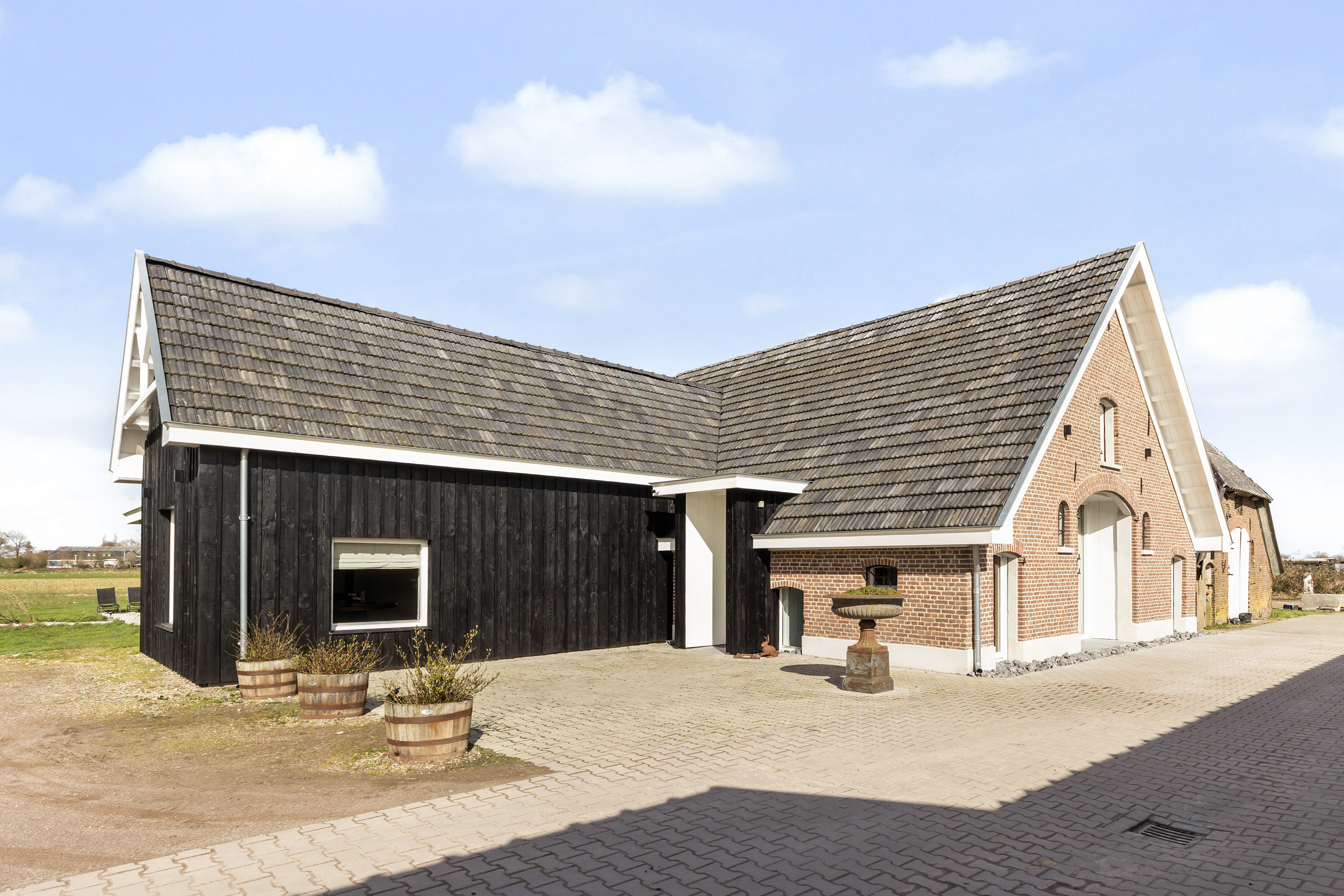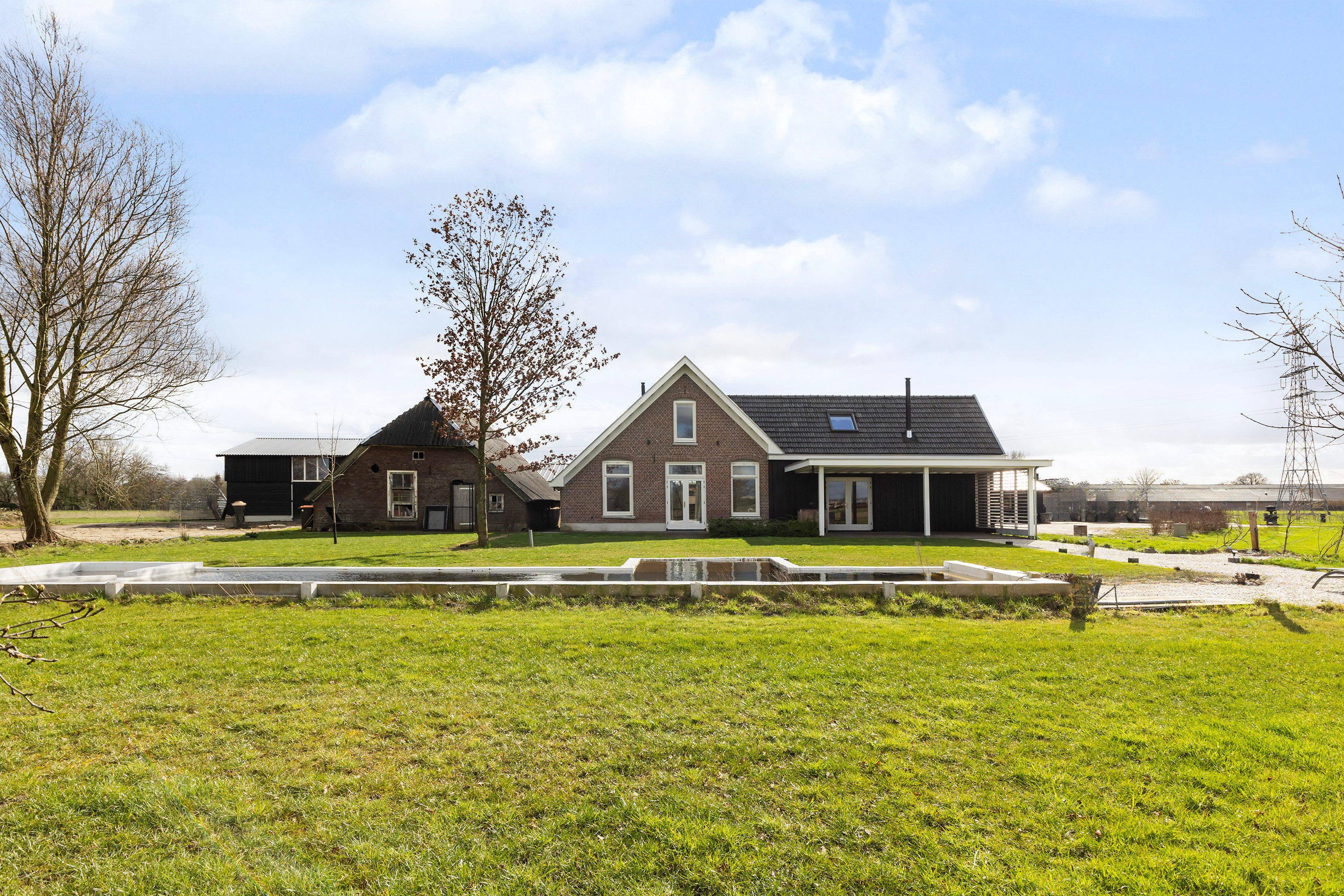 The farmhouse stands on approximately 2,500 m² of private land and forms part of an exclusive rural estate of around 4 hectares, designed in accordance with a thoughtfully implemented landscape and nature plan. Here, you enjoy wide, open views, mature greenery and a remarkable sense of freedom, without the responsibility of maintaining the surrounding grounds.