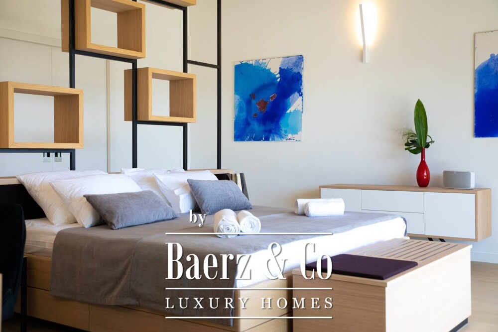 Villa A measures 342 m² across three meticulously arranged floors: a basement with wine cellar, wine shop, wellness area with sauna and shower, and expansive storage; a ground floor with defined entrance, living area, dining space, kitchen and utility rooms, opening onto two covered terraces designed for seamless indoor-outdoor transition; and a first floor housing four bedrooms, each with en suite bathrooms, and a covered balcony commanding tranquil sea views.