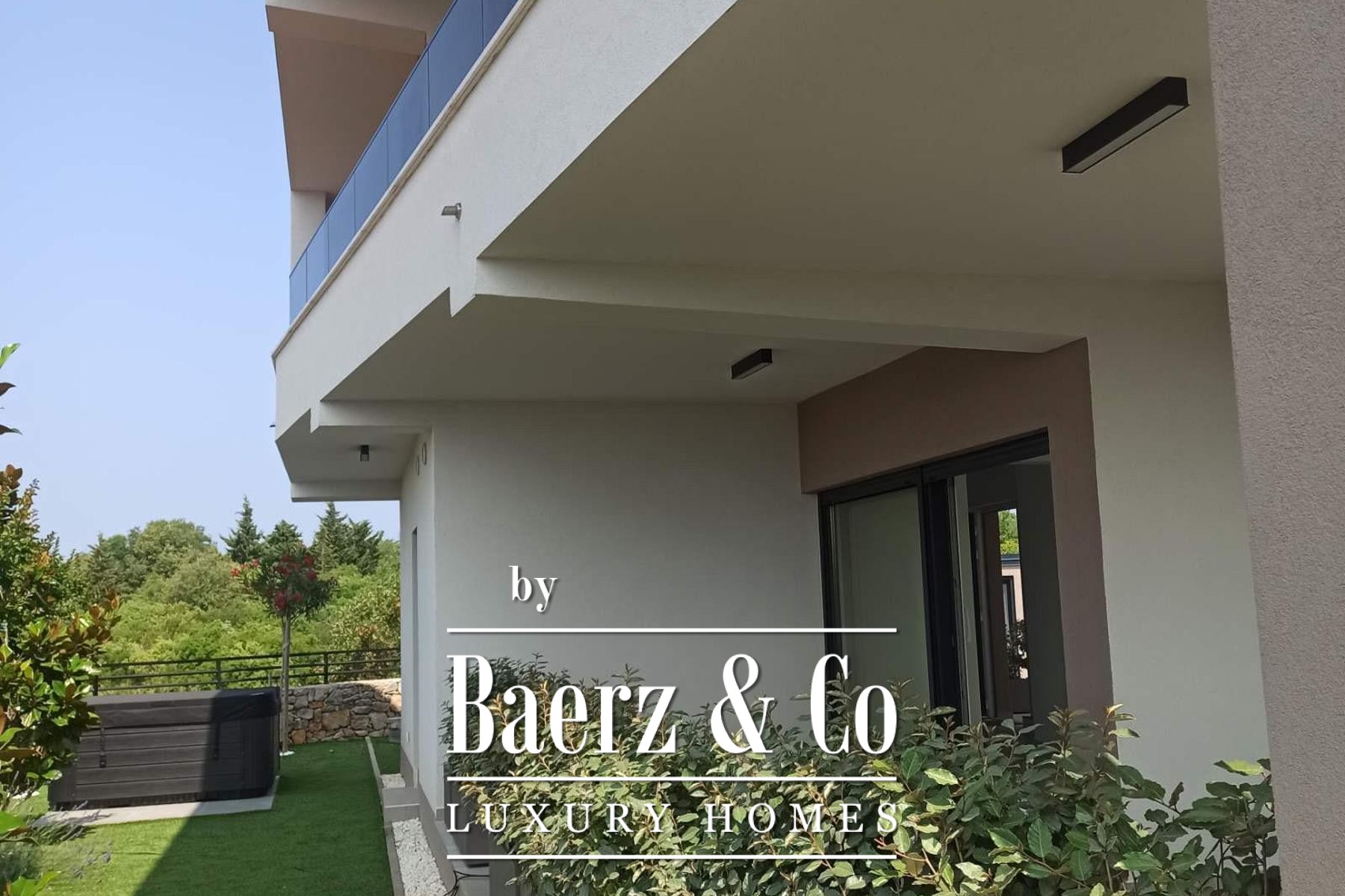 Modern newly built villa on the island of Krk, with a living area of 200 m², situated on a 614 m² plot. This property offers top-level comfort, carefully selected design, and high-quality materials, with spacious terraces that provide a stunning sea view.The ground floor features a large open-concept living space with an elegant fireplace, a kitchen, and a dining area with direct access to the terrace. There is also a wellness area with a sauna and bathroom, a guest toilet, entrance hallway, and a practical storage room.Upstairs, there are three spacious bedrooms, each with its own en-suite bathroom and access to a balcony or terrace, ensuring privacy and comfort. Additionally, there is a separate laundry room on this floor. All bathrooms are equipped with underfloor heating, providing a cozy atmosphere