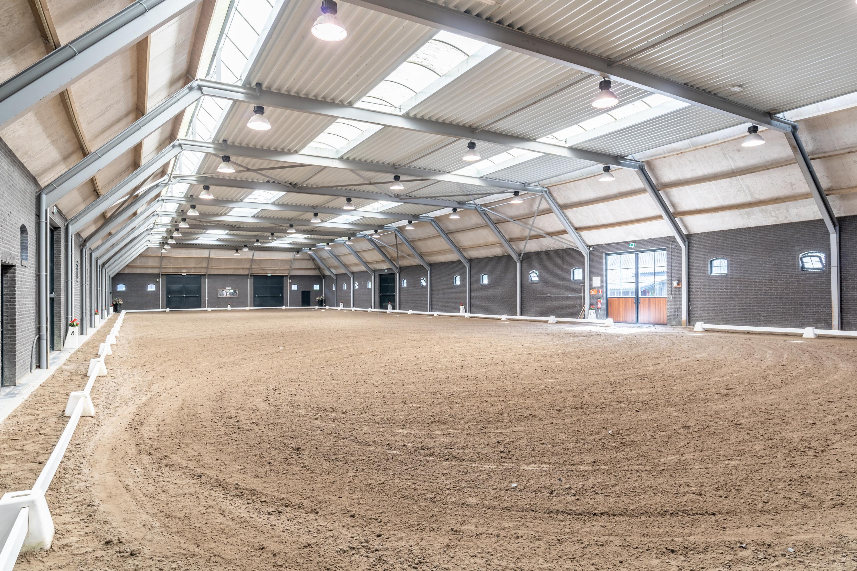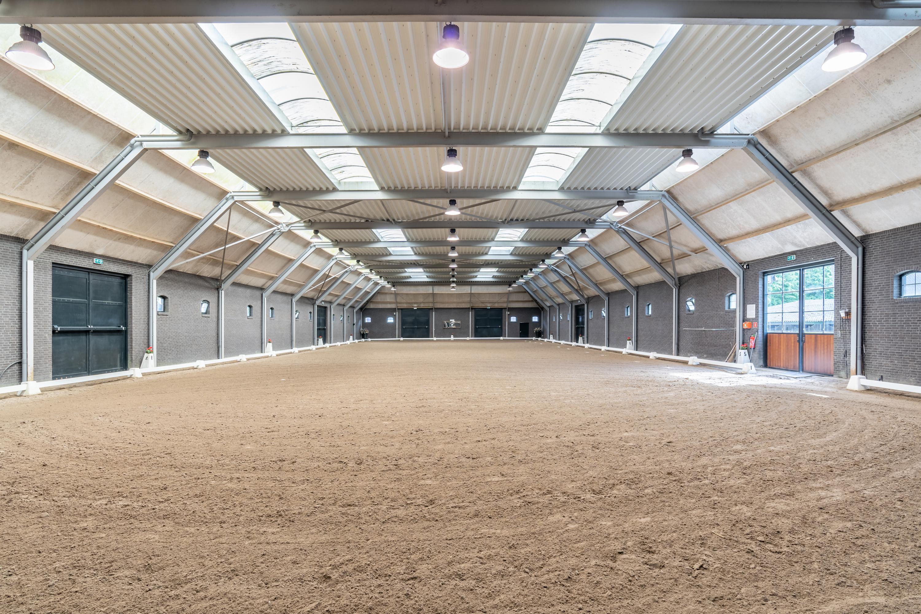 This beautiful, complete equestrian accommodation offers plenty of possibilities thanks to the presence of a detached house and living areas, a total of 33 horse stalls divided over various units, a spacious indoor and outdoor arena (approx. 22x62 metres), a storage shed with rearing stalls and large pastures. In addition, the property is situated in a beautiful location with plenty of privacy and on the edge of the Leenderbos forest with excellent riding opportunities!