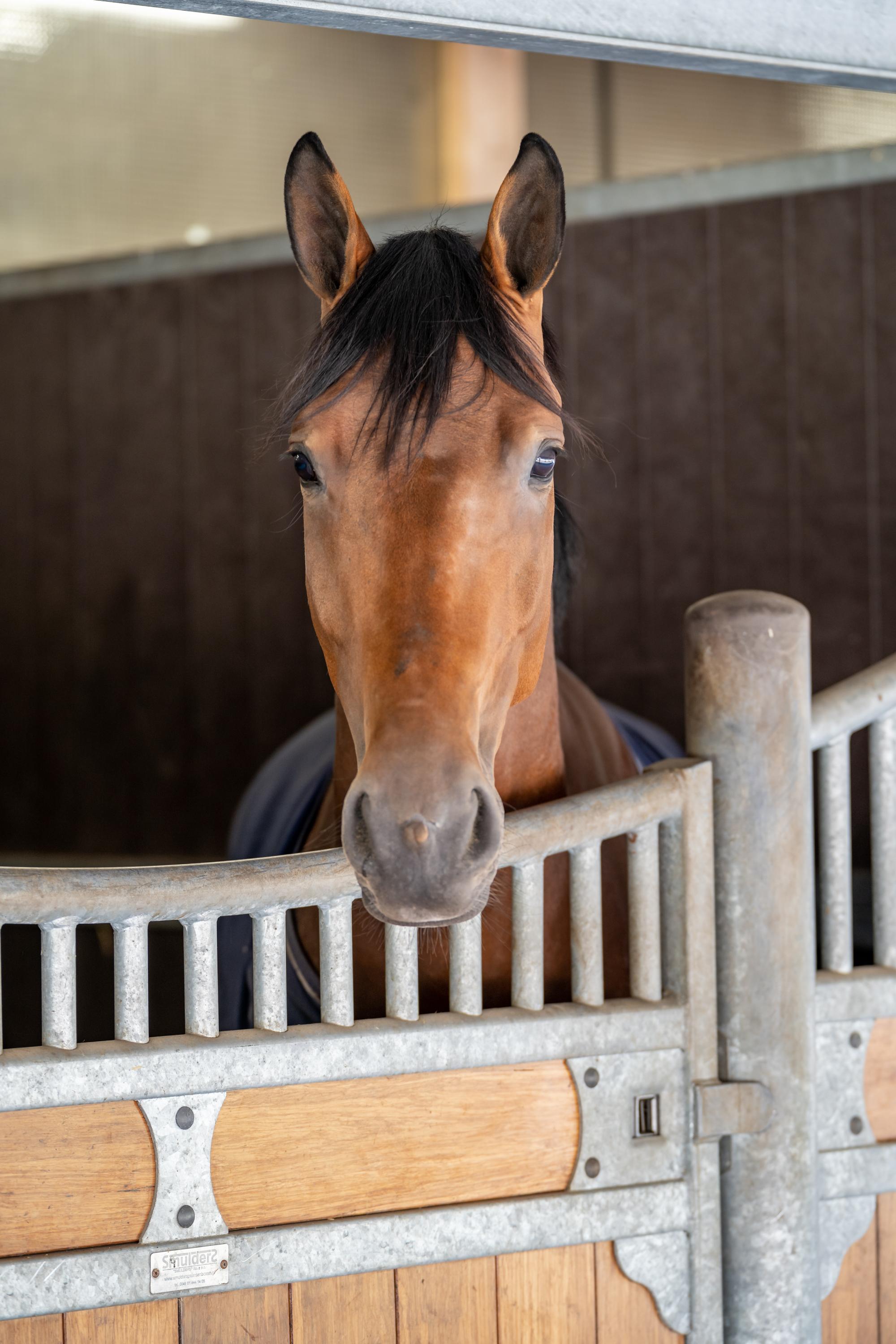 The horse stable is further divided into three units with a total of 20 horse stalls. The insulated stable is constructed of masonry with steel trusses and also has a tiled roof. French doors provide access to the yard from all units. In addition to 11 horse stalls, the first stable unit also has 4 washing areas, a tack room, a laundry room and a toilet. The stalls (approx. 4x4 metres) are equipped with partly plastic and partly galvanised front walls with sliding doors and brick partition walls. Six stalls have an outside hatch. Stable section II has six horse stalls (approx. 4x4 metres) with partly plastic and partly galvanised front walls with sliding doors and concrete partition walls. The unit also features attractive wooden trusses. The third stable section has 3 more stalls, all of which have an outside hatch. The stalls have partly plastic and partly galvanised front walls with sliding doors and concrete partition walls.