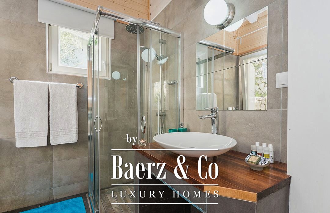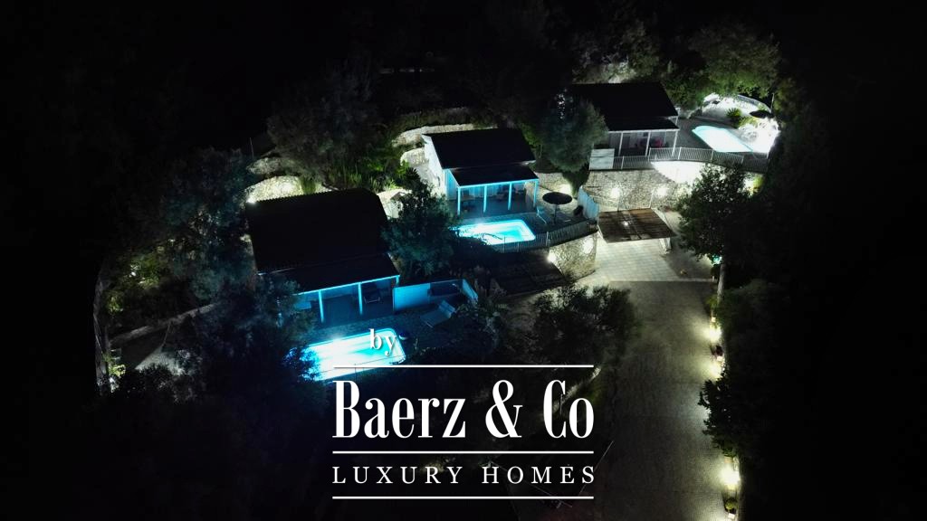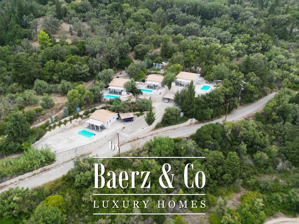 Holiday complex Lefkada is situated in a privileged setting on the southern hills near Agios Petros, commanding unobstructed views across Vasiliki Bay. The complex consists of four independent residences with a total living area of 200 m², thoughtfully arranged within 3,330 m² of landscaped grounds. Completed in 2015, this property is positioned just 1.7 km from Vasiliki Beach and a short drive to Porto Katsiki, Egremni, and Gialos.