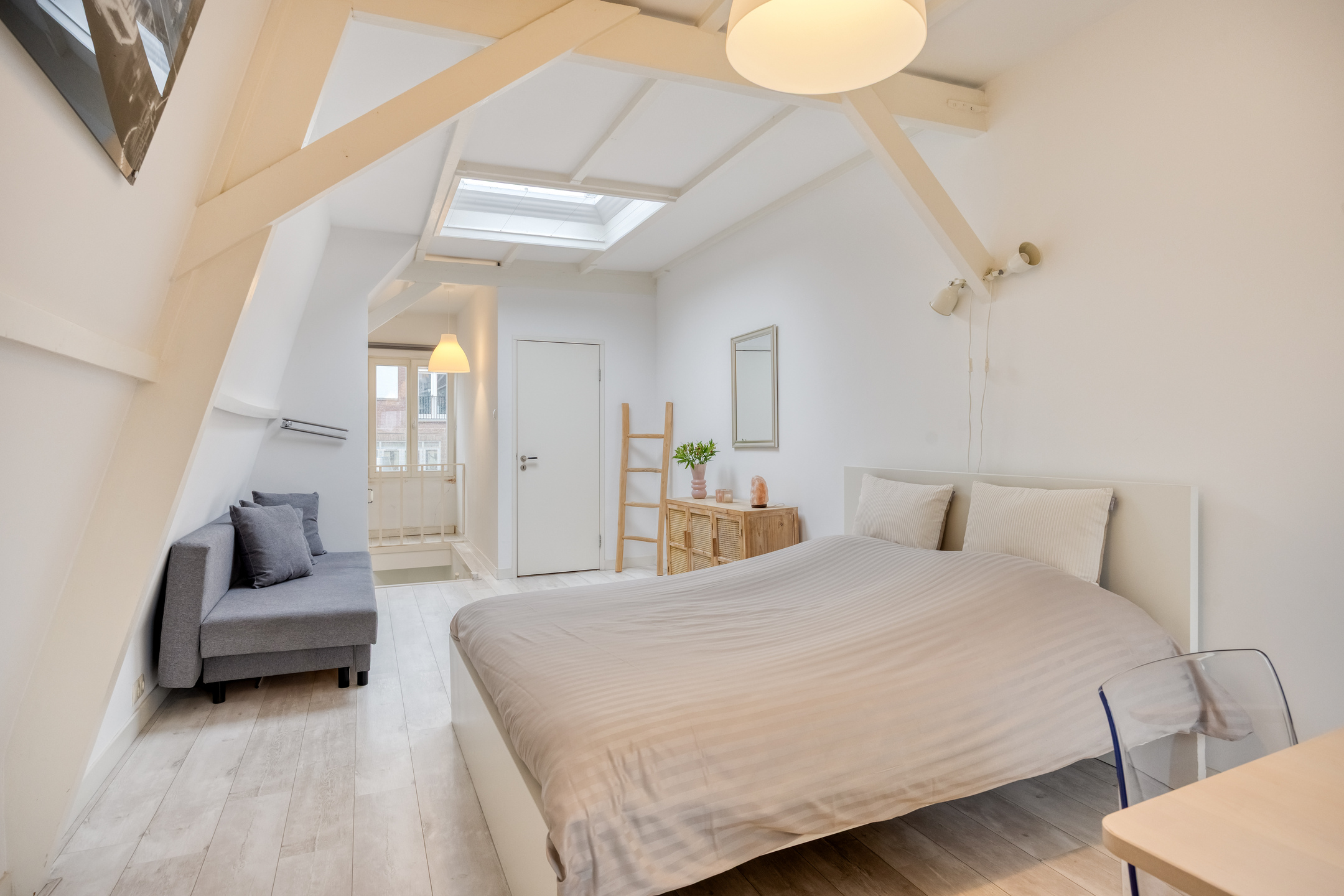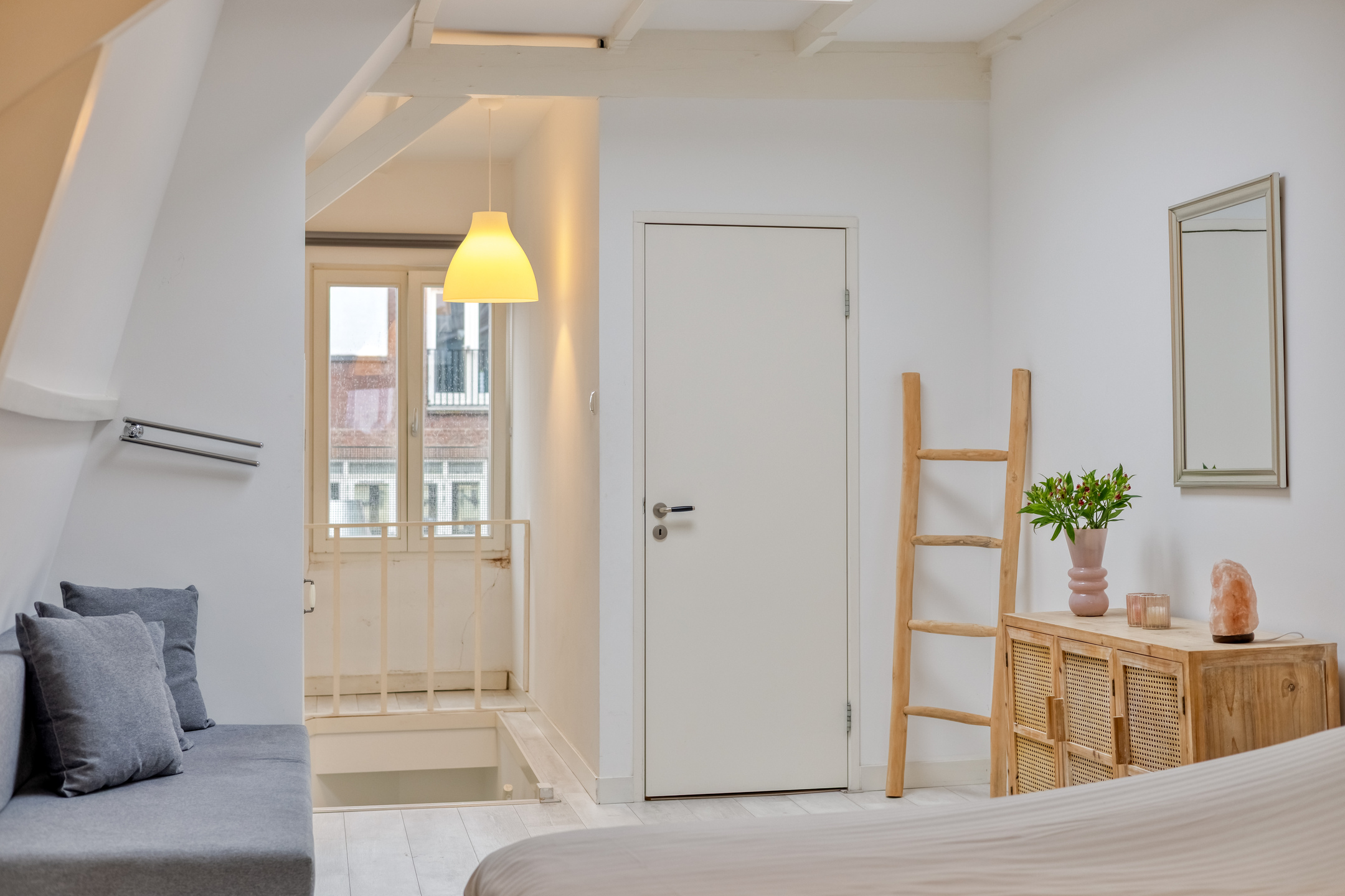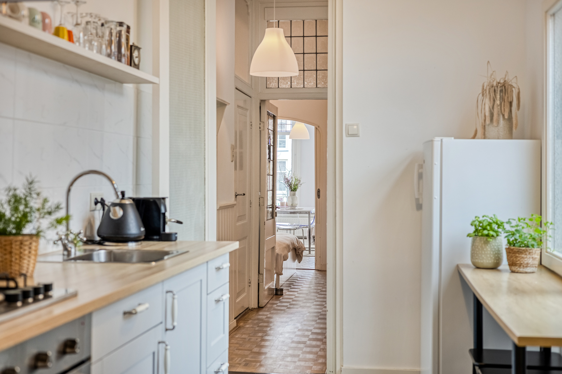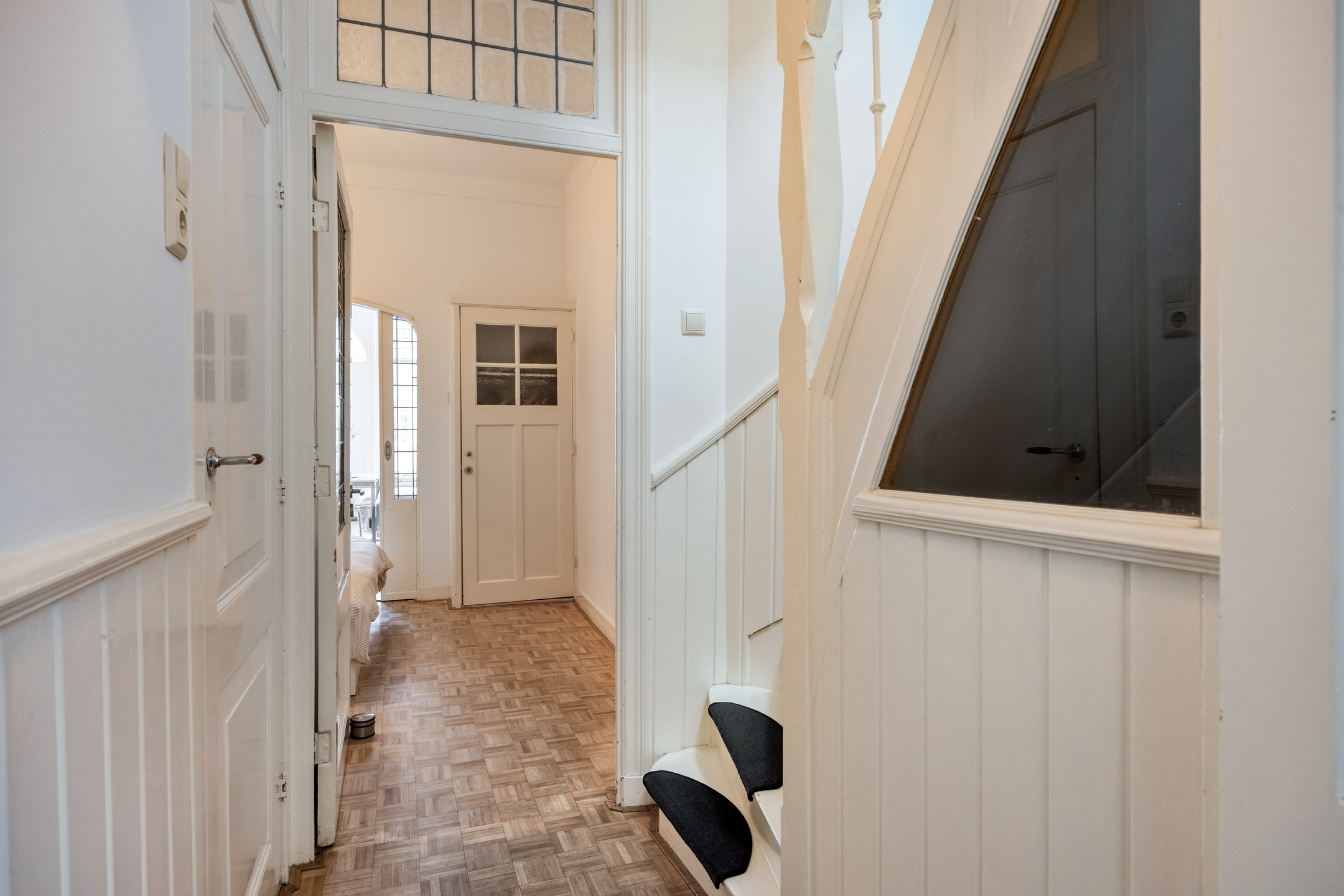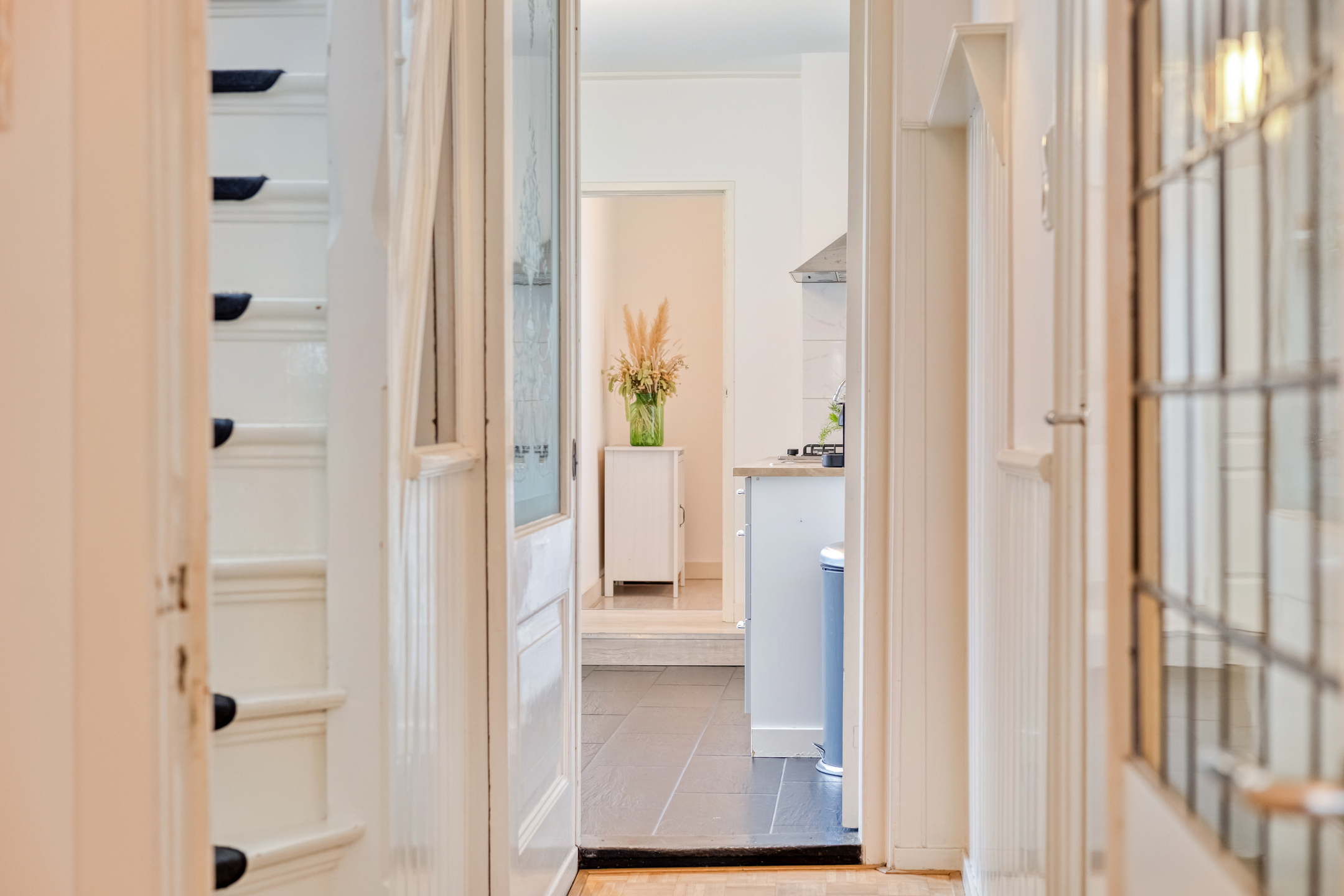 Tucked away in an alley between Breestraat and Botermarkt lies the entrance to this unique home. From the street, it is difficult to guess what you will find behind the front door, but once inside, you will be surprised by the light, the space, and the pleasant layout.