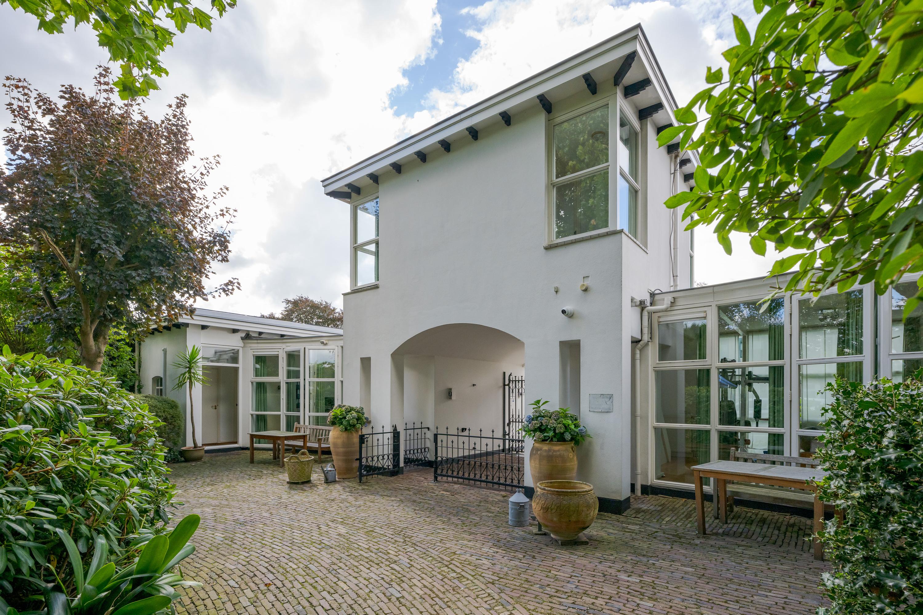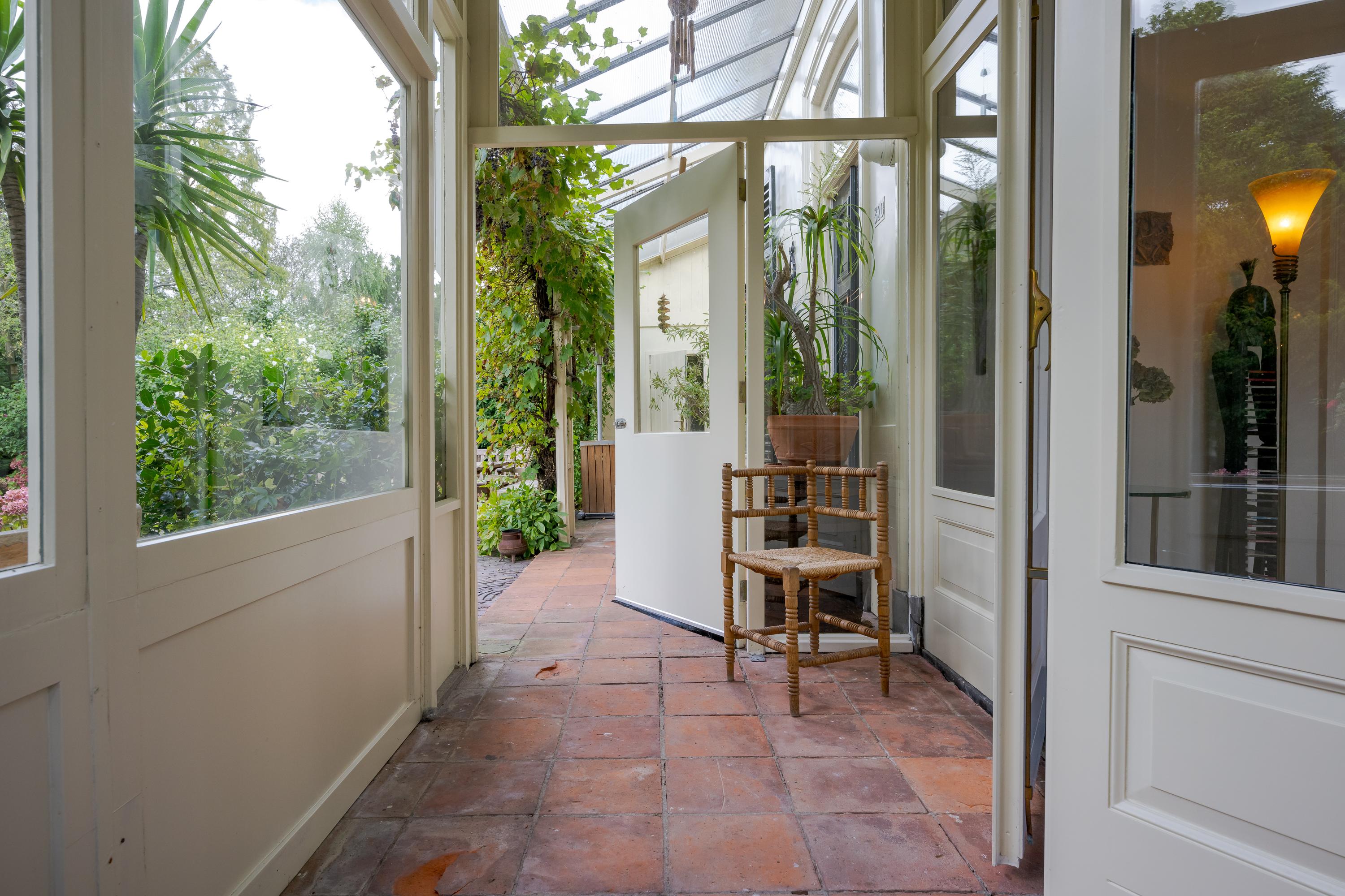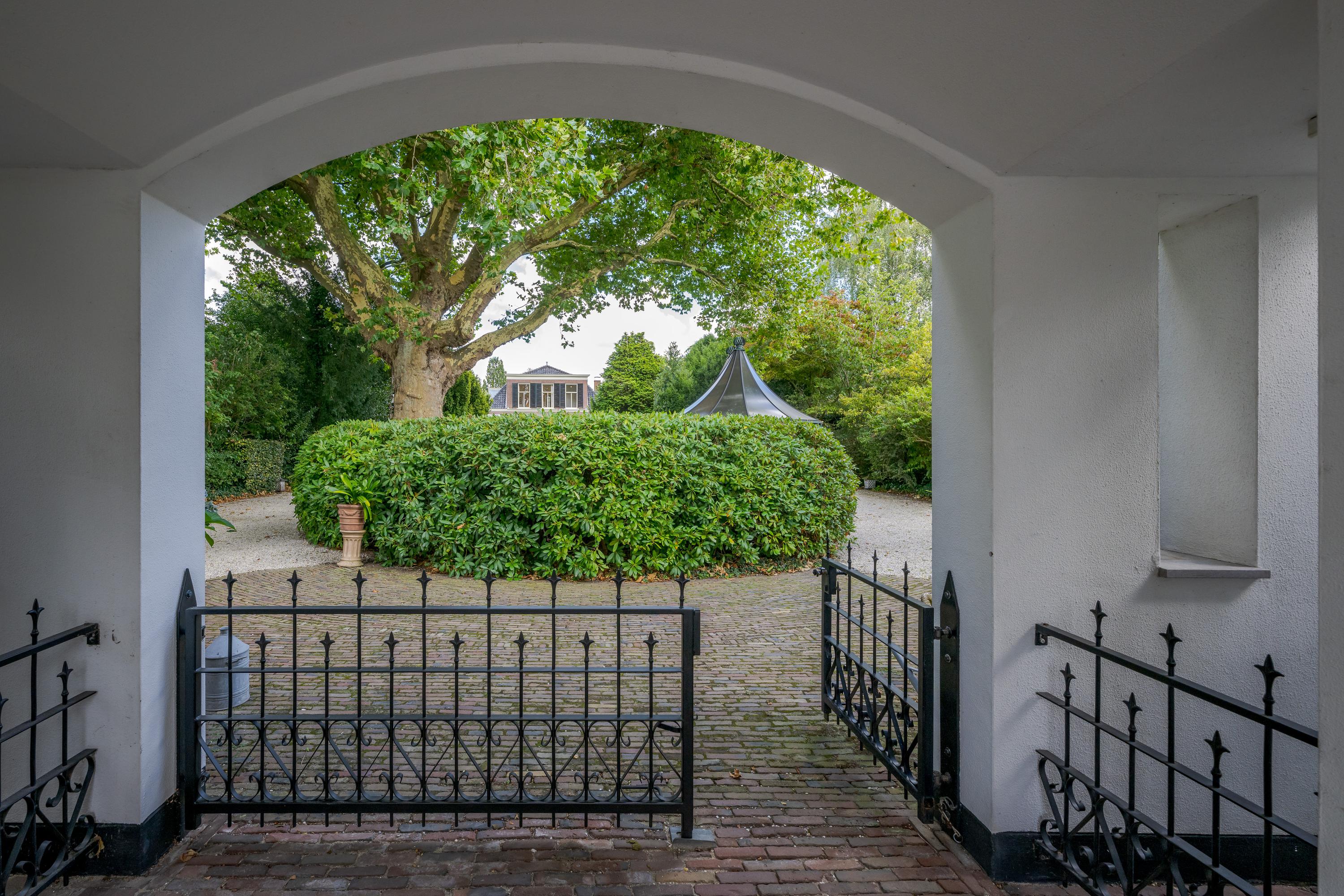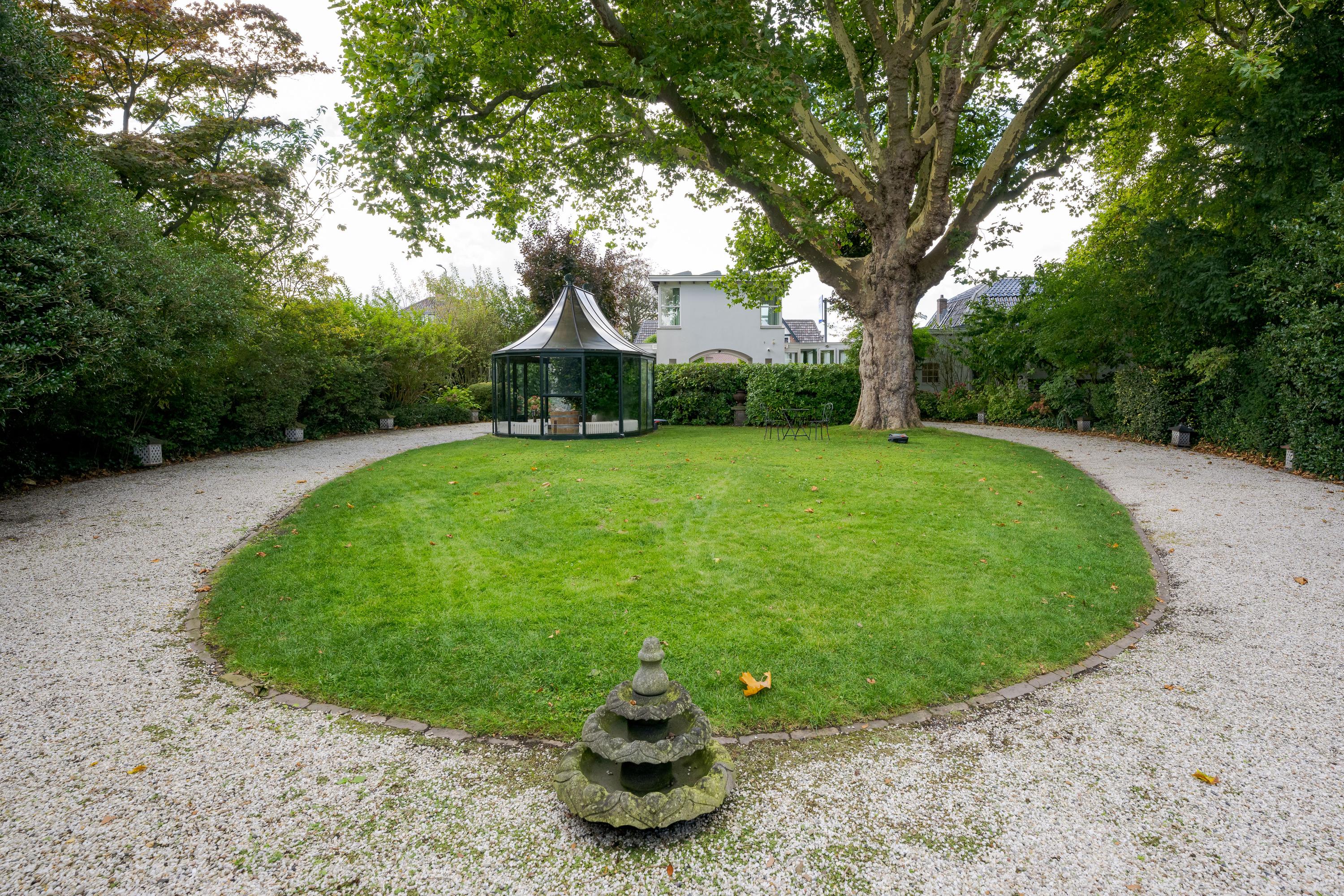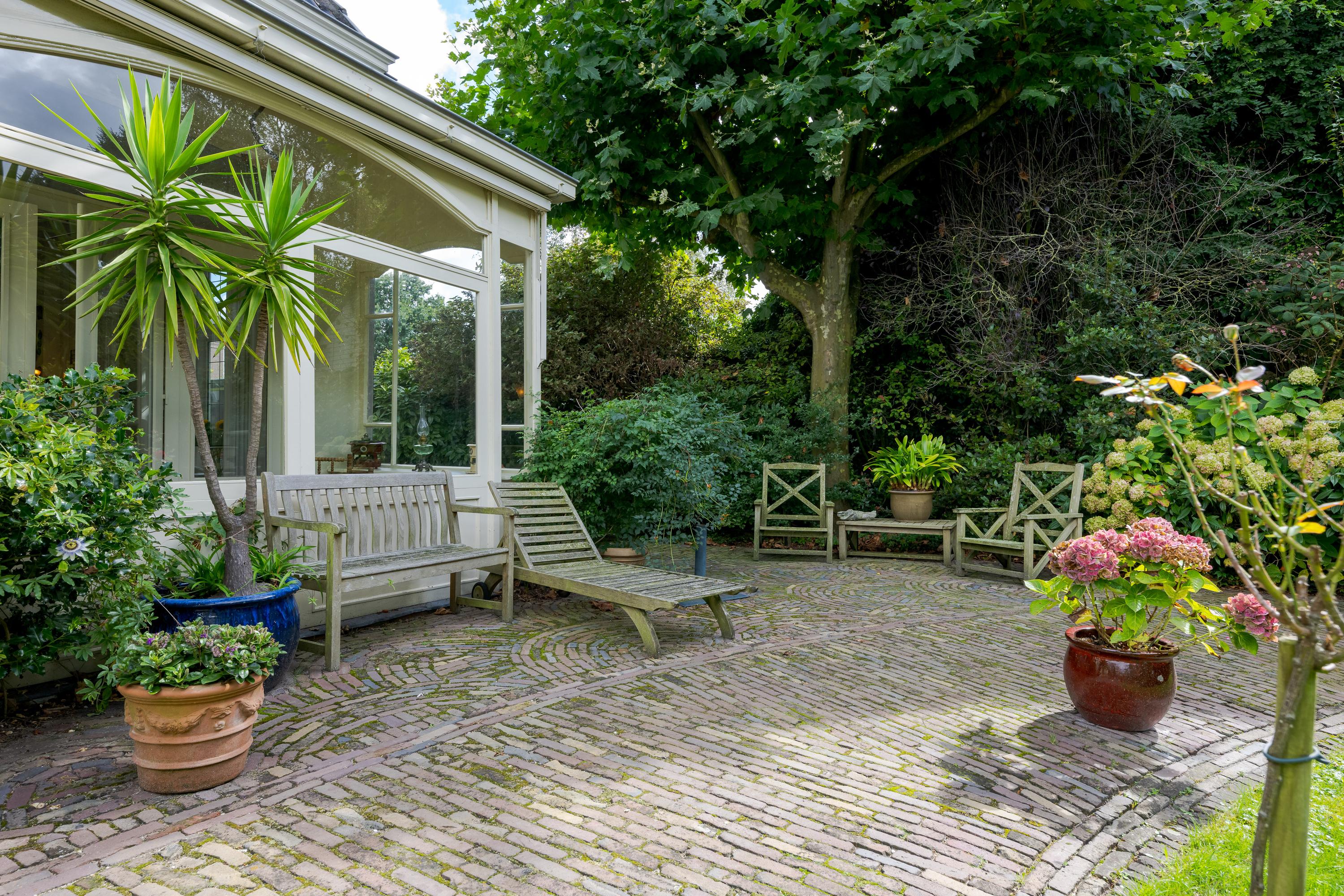 After you have closed the electric gate of the gatehouse behind you, you immediately imagine yourself in a different environment and the peace comes over you. A central lawn with a centuries-old plane tree (1820) forms the heart of the courtyard. Special is the greenhouse with a mandarin tree next to this tree, where you can still sit on a sunny day in the middle of winter. Both to the left and right of the lawn is a gravel path, where you can drive directly to the house if you want. There are now a few corners and seats where you can enjoy the sun or shade at different times of the day. A little further on is a pond that is equipped with a water supply system with Rhine water, with the entrance to the house behind it, flanked on the left by a veranda and on the right by a sunny conservatory. Here too, you can enjoy this large garden all year round.