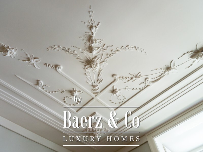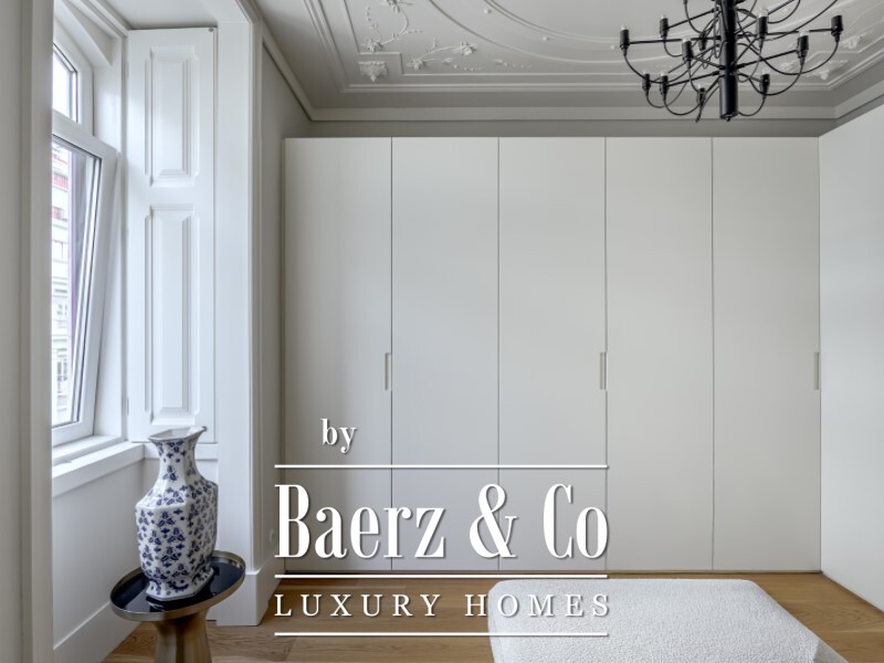 High decorative ceilings at 2.8 m provide a sense of airiness, while abundant natural light filters through wide rooms finished with meticulous attention. Estremoz marble details and built-in wardrobes signal a commitment to enduring materials and thoughtful design. The layout unfolds gracefully: an entrance hall leads to the living and dining rooms, a kitchen with Miele appliances, a powder room, a versatile bedroom or office, and four suites, two featuring walk-in closets. Underfloor heating in bathrooms, air conditioning in all rooms, and central heating guarantee year-round comfort.