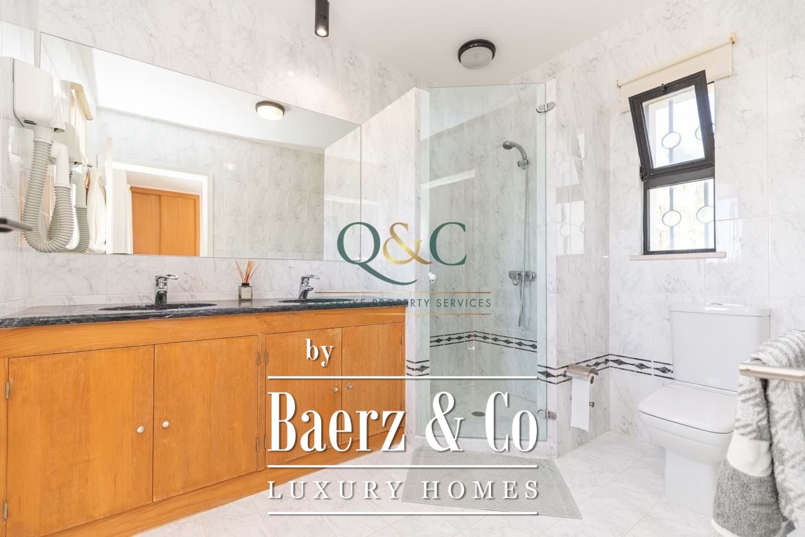 Villa Loulé presents a rare sense of calm just five minutes from the vibrant market town of Loule, with captivating sea and countryside views. This villa rests on a 6,720 m² plot, embraced by established gardens and a distinct rhythm of space and light. The 440 m² residence welcomes you with an open plan living and dining area, anchored by a fireplace and direct access to a broad terrace. The kitchen is well-proportioned and equipped for daily living. On the main floor, the master ensuite offers a generous walk-in dressing room, complemented by a family bathroom.