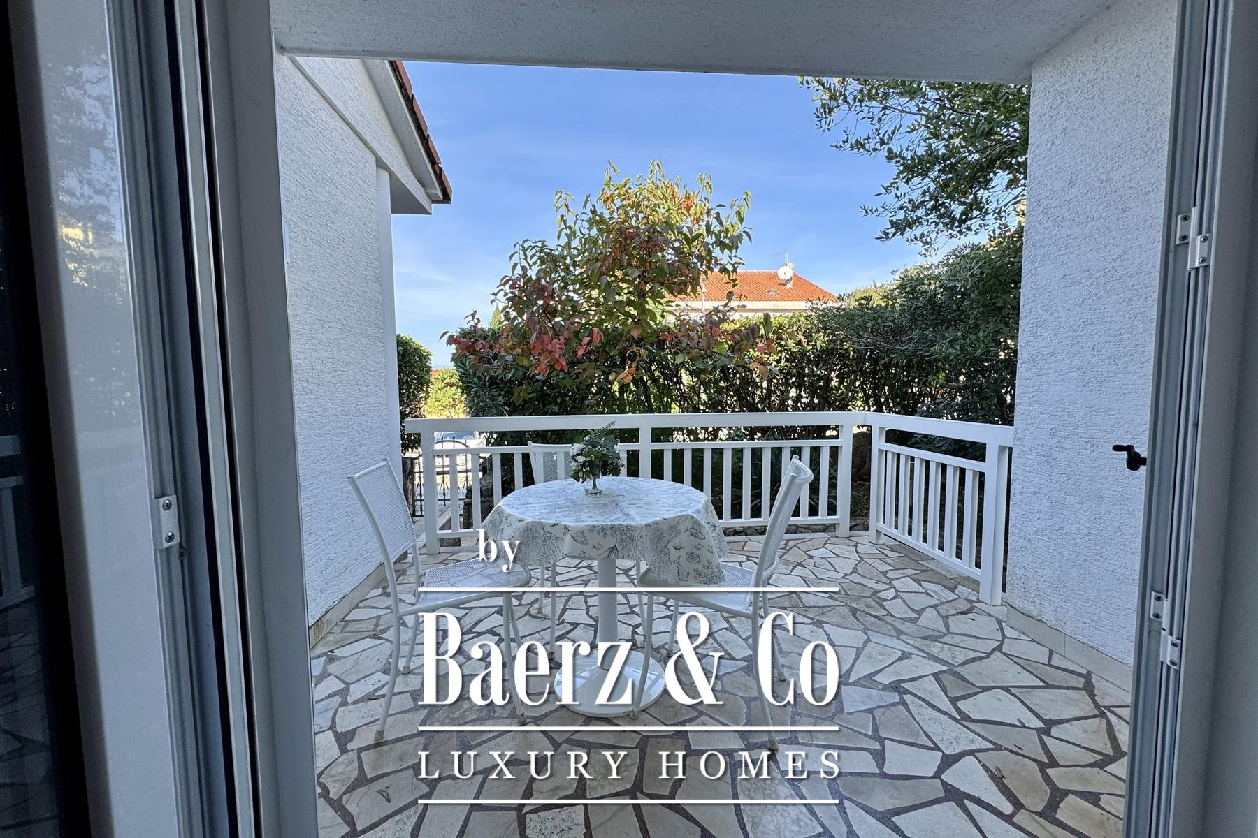apartment consists of a bedroom, bathroom, kitchen, living room and terrace.Another additional apartment is located in the basement of the house and has two bedrooms, a kitchen, a bathroom and a storage room.There is also a garage in the yard of the house, and the garden itself is full of beautiful Mediterranean plants.Four more cars can be parked in the yard.For any additional information, feel free to contact us!
