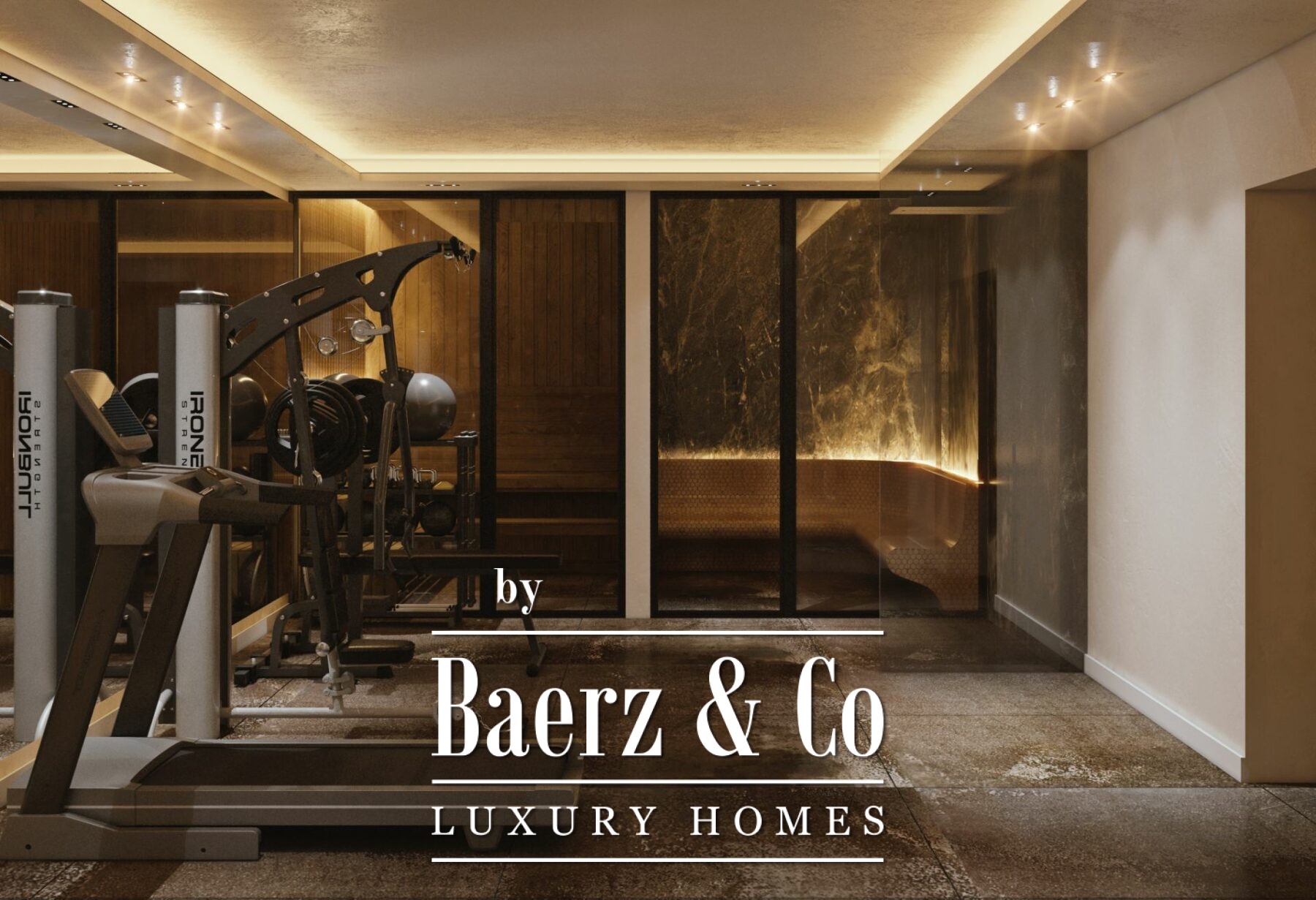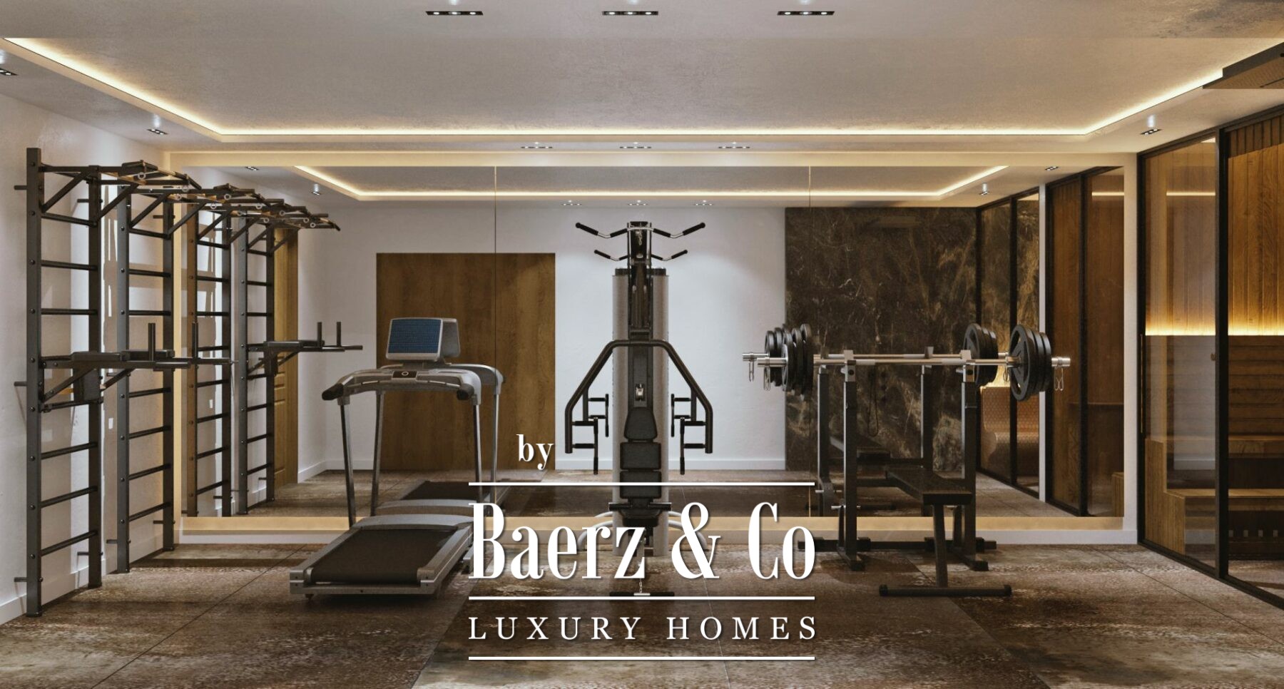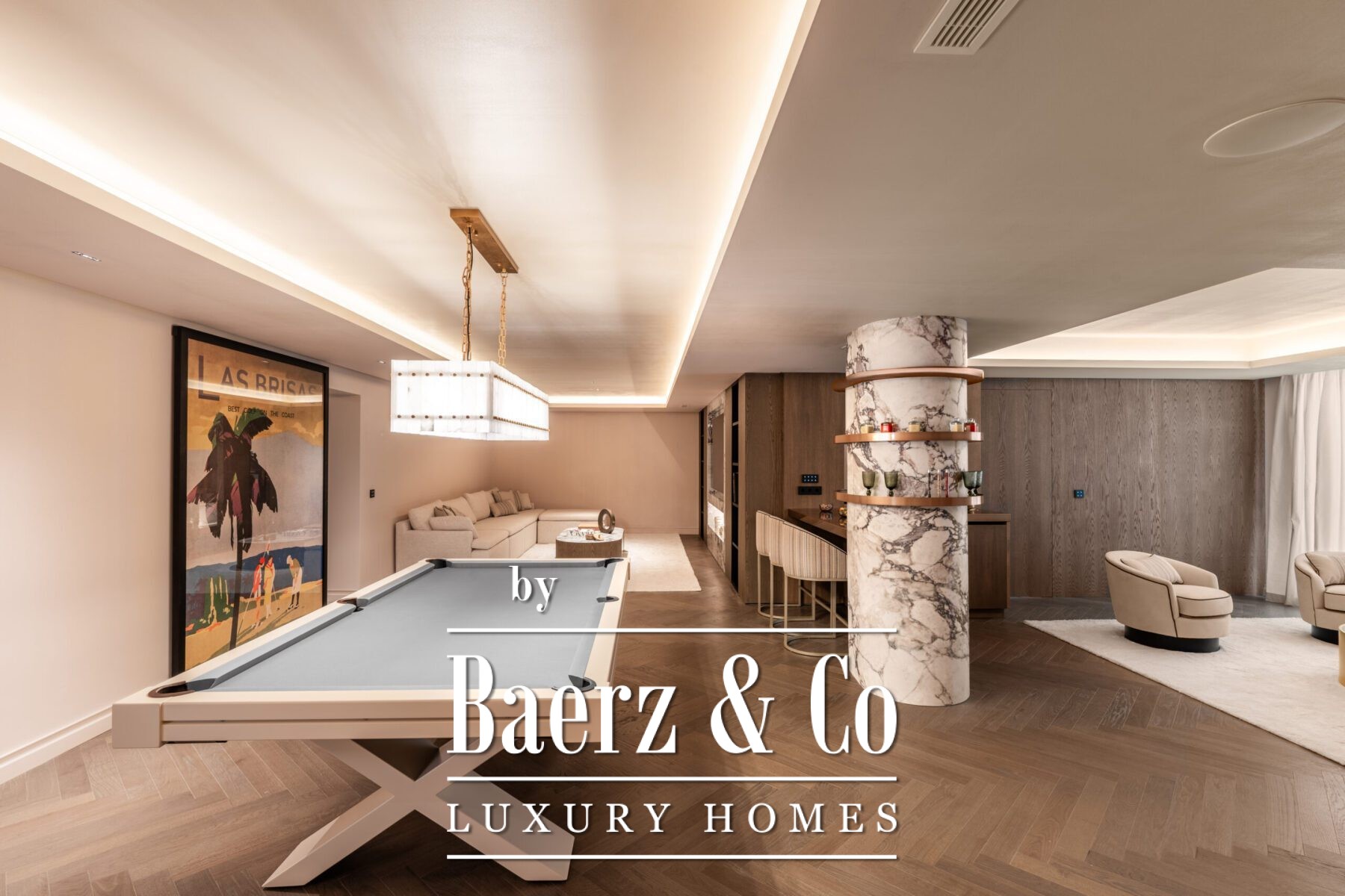 In the 250m² basement, high ceilings provide a sense of openness where relaxation and leisure converge. This level hosts a private cinema, a spa experience complete with sauna and steam room, a fully equipped gym, and a wine bodega. The garage is capacious and meticulously arranged with a car turntable for ease of access, seamlessly connecting the interior to the quiet landscaped garden.