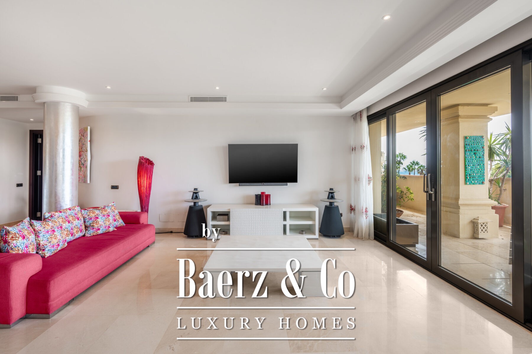 This beachfront apartment Marbella melds expansive interior living with the allure of direct Mediterranean access. Encompassing 394 m² of indoor space and 67 m² of terraces, the first-floor residence enjoys south-west orientation, flooding the home with light and revealing tranquil sunset vistas over the sea. The address is set amidst one of Marbella's most private coastal enclaves, moments from Puerto Banús, celebrated dining, designer boutiques, and necessary amenities.