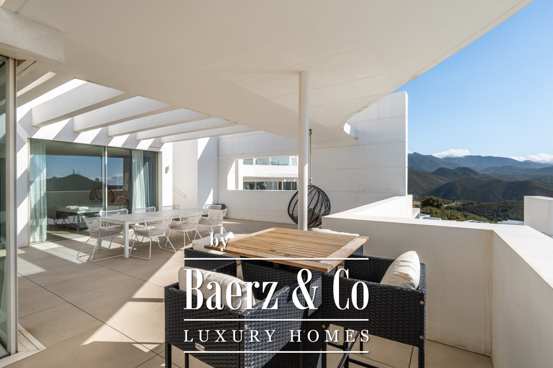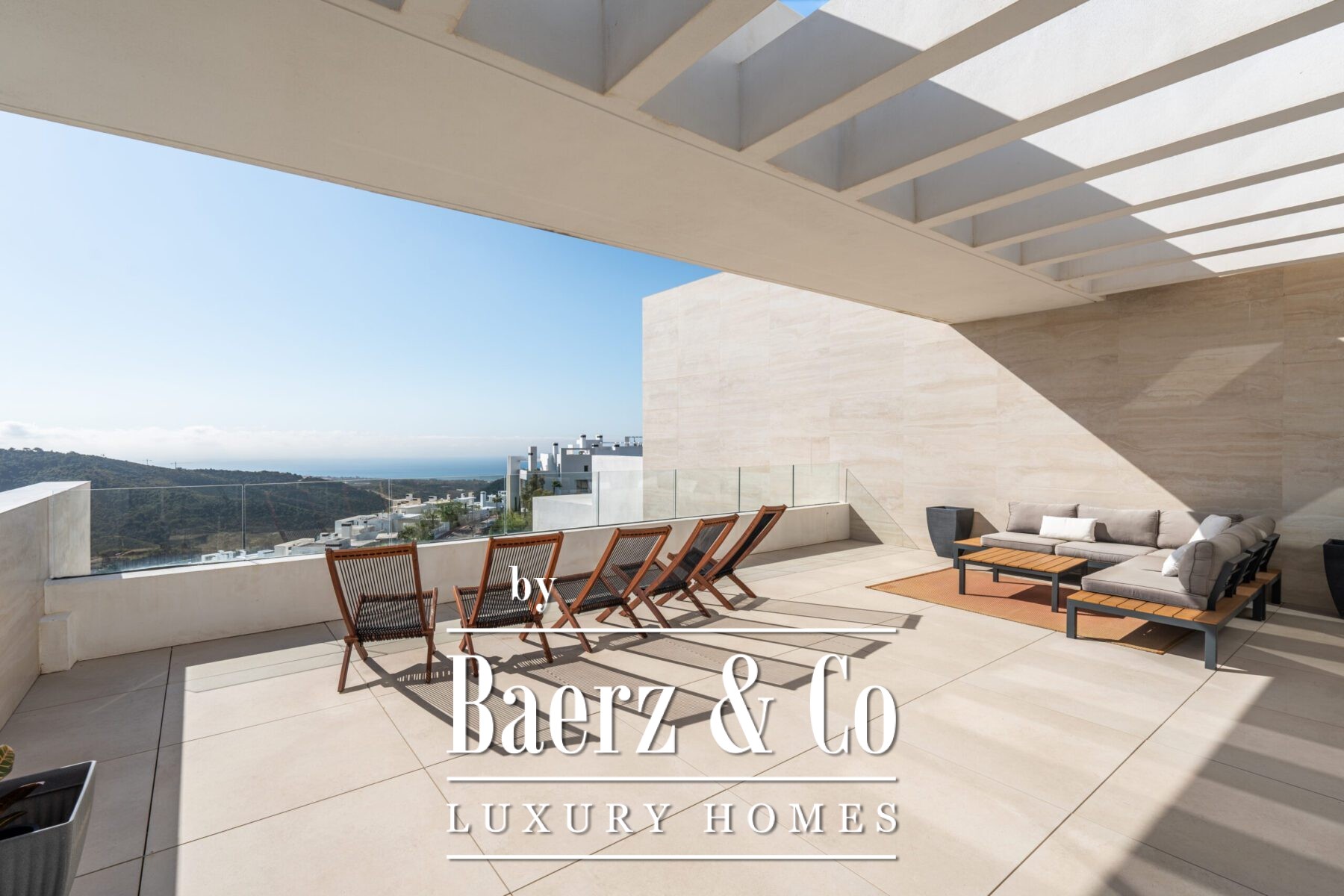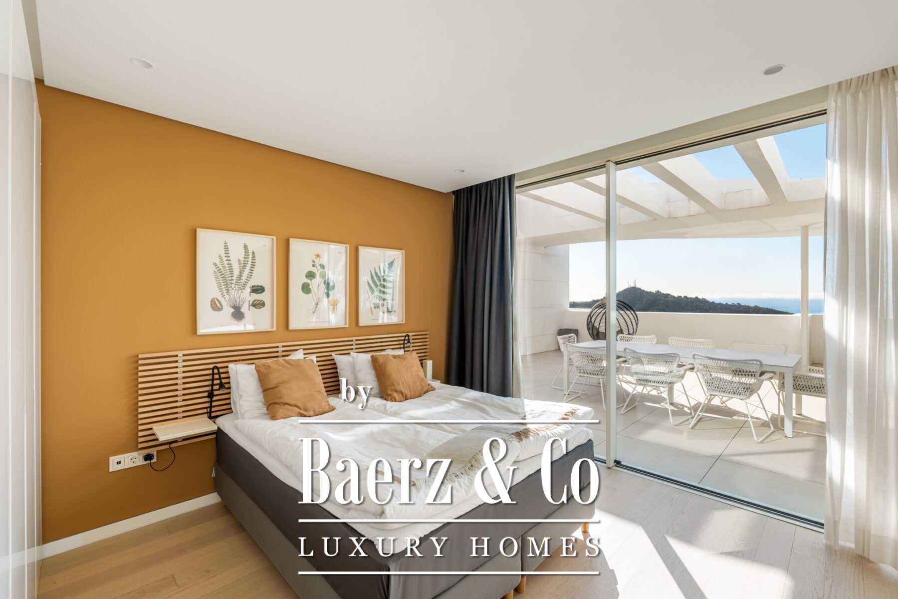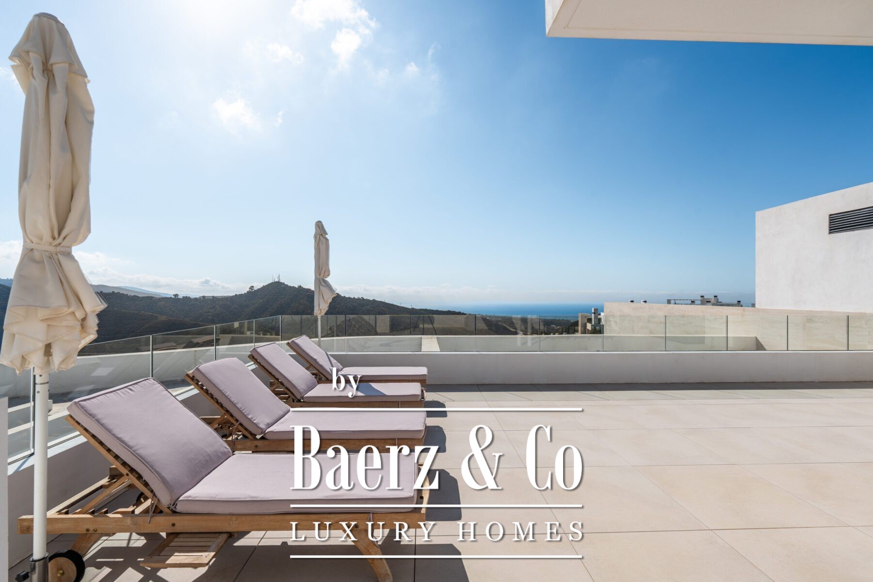 Penthouse Marbella invites a rare confluence of privacy and panorama, poised above the city within a secure gated enclave. This penthouse in Marbella, southeast-facing for optimal light, commands sweeping views of the sea and mountains from a private position. Spanning 157 m² of refined indoor space and 276 m² of surrounding terraces, every aspect is calibrated for sophisticated indoor-outdoor living.