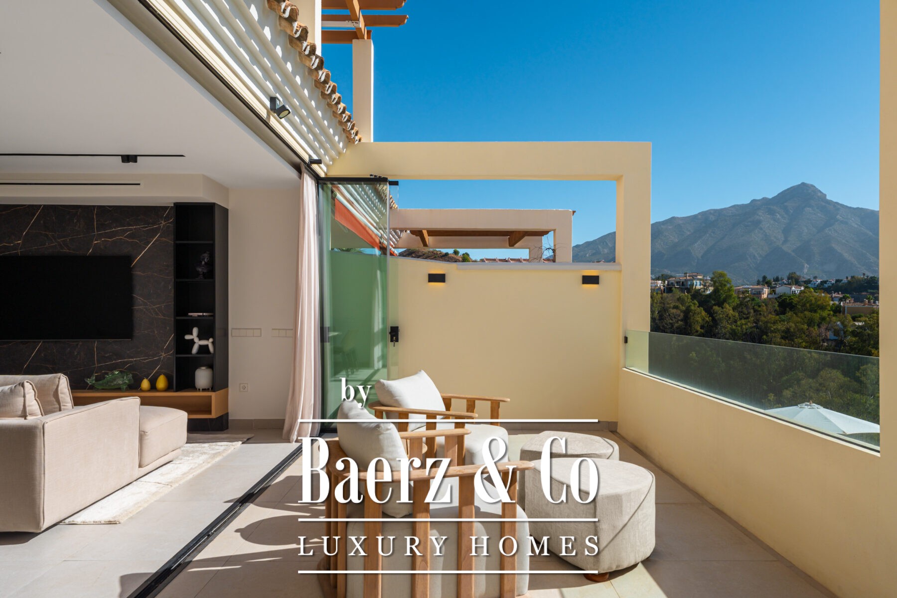 Apartment Nueva Andalucía forms the focus keyword for this modern residence, fully renovated in 2024 to offer 170 m² of calm and refined living space within an exclusive gated community. This three-bedroom apartment presents a light-filled sanctuary with 146 m² of elegant interiors and a 24 m² private terrace commanding panoramic views over La Concha mountain, the Mediterranean Sea, and a tranquil lake, making each moment at home visually compelling.