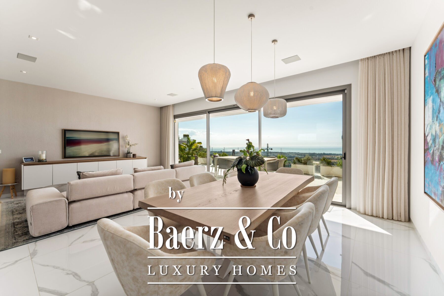 Apartment Benahavís Panoramic Sea and Mountain Views introduces a modern residence within one of the area’s most coveted developments. Completed in 2024, this south-facing apartment spans 254 square meters and is thoughtfully crafted to frame panoramic sea and mountain vistas, bringing an uncommon connection to the Andalusian landscape.
