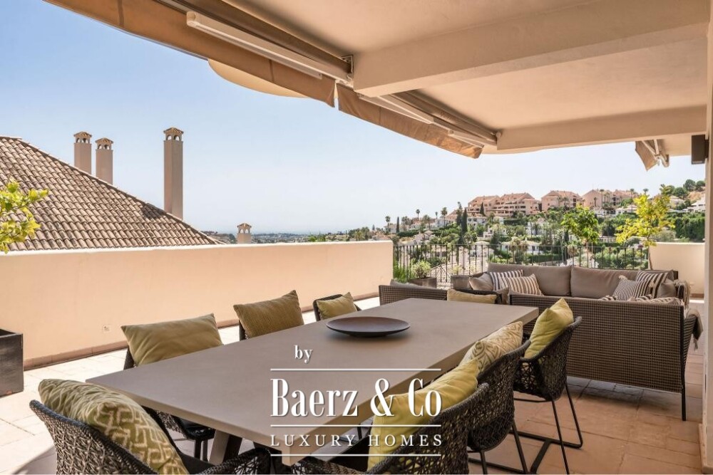 This duplex apartment Marbella stands in the sought-after Aloha community in Nueva Andalucía, offering a considered blend of contemporary architecture and refined design. From the outset, the 232 m² residence communicates discretion and comfort, its spacious layout spanning two levels that balance privacy with open, welcoming spaces. The property features four bedrooms and four bathrooms, each crafted for tranquility and ease, with thoughtfully positioned terraces that capture sweeping views of the Mediterranean Sea and the mountains.