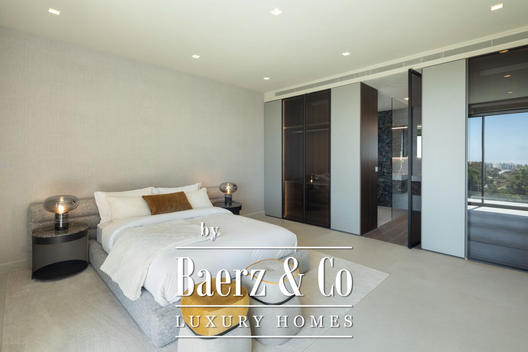 Every finish invites tactile appreciation: designer carpentry, Q-Rail glass, Hansgrohe rain showers, and custom wardrobes. Integrated technology, from high-speed Wi-Fi to smart entry and security, supports discreet modern living. Anchored minutes from Marbella, Puerto Banús, golf, and the Costa del Sol’s golden beaches, this villa is both a private refuge and a gateway to the Mediterranean’s most privileged pleasures.