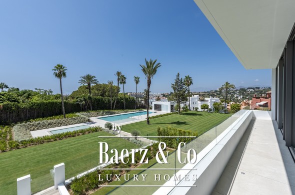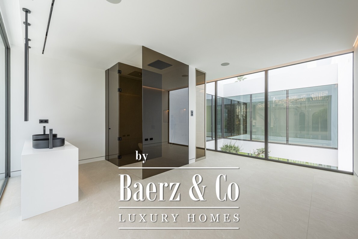 This semi-detached villa Marbella is situated in the heart of Nueva Andalucía, enveloped by the region’s most coveted golf courses and within moments of Michelin-starred restaurants, pristine beaches, and the vibrant energy of Puerto Banús. Completed in December 2023, the villa expresses a restrained contemporary vision, with approximately 423 m² of interior space, 246 m² of surrounding terraces, and a private garden measuring 91 m².