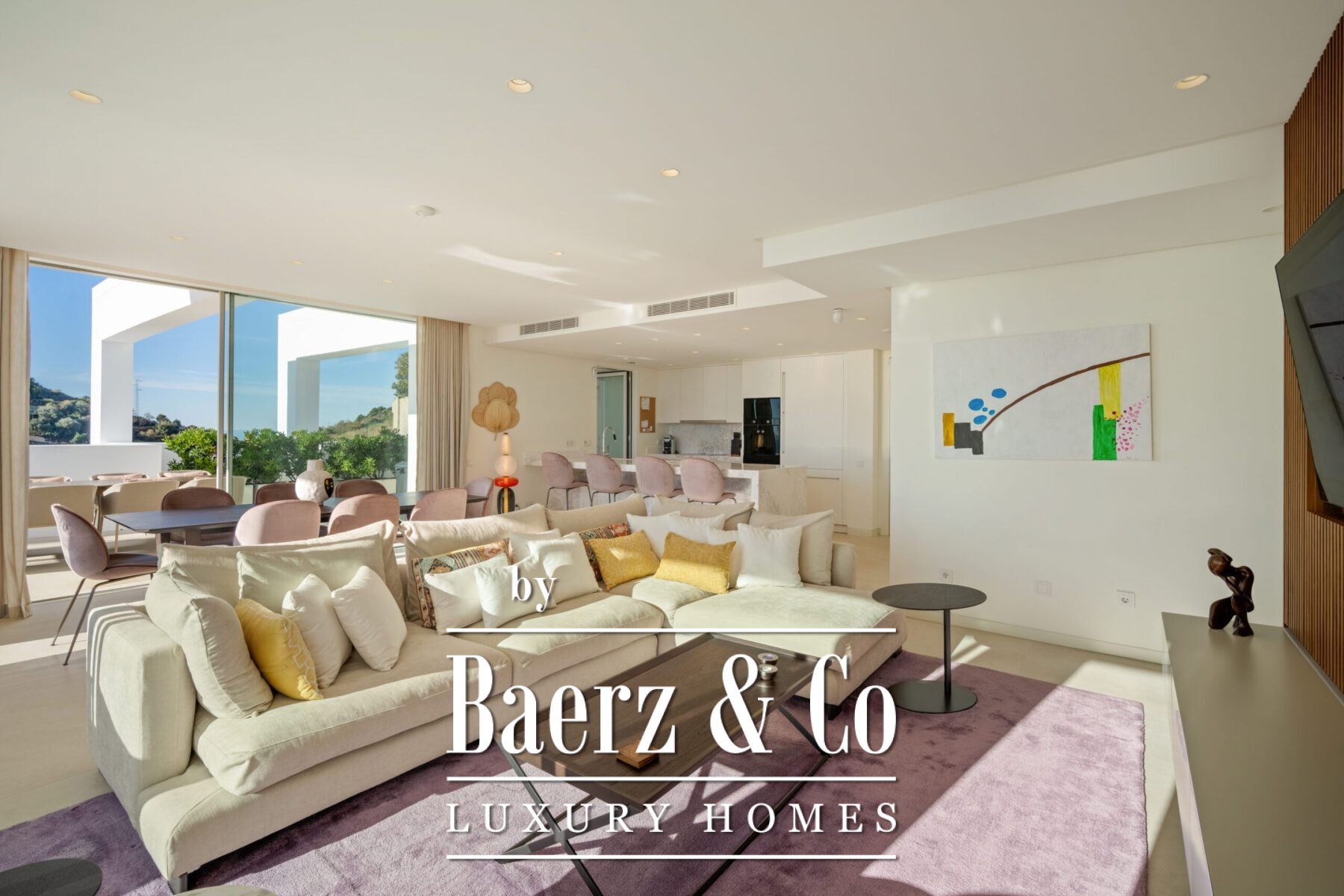 Residents enjoy 24-hour security and an array of resort-inspired amenities: clubhouse, spa, gym, sauna, cold plunge, cinema room, tennis courts, scenic hiking trails, and an on-site organic market. Located within minutes of Marbella's coast, golf courses, and all local conveniences, this duplex penthouse Marbella is a statement of elevated living in a privileged setting.
