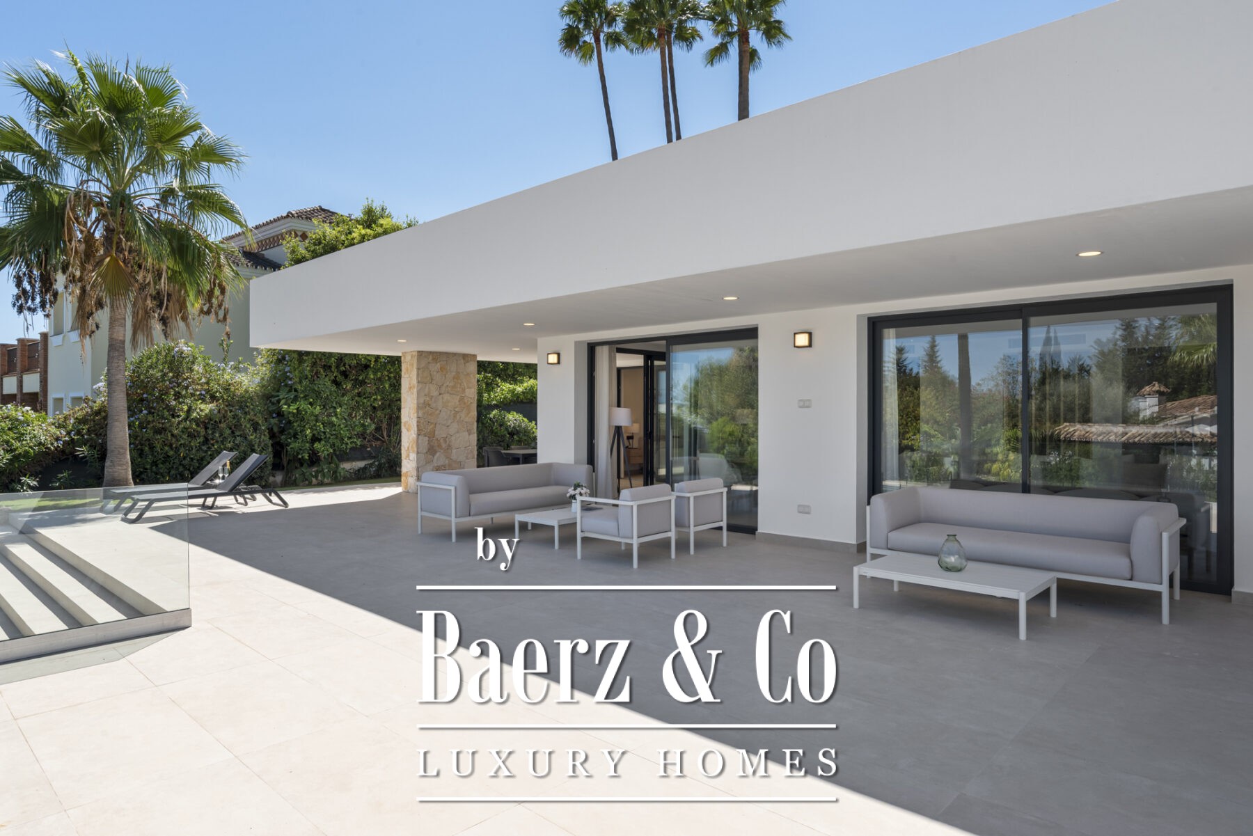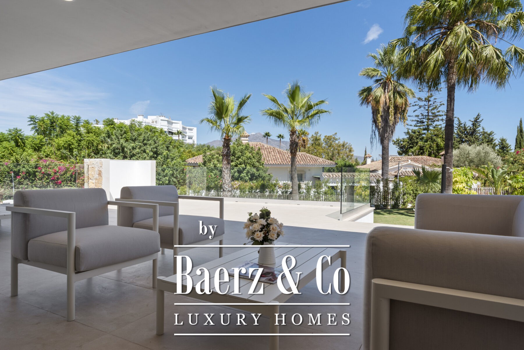 Villa Marbella with sea and mountain views welcomes you to an atmosphere of refined Mediterranean living. Ideally situated within walking distance of Guadalmina Golf Club and only minutes from the coastline, this 320 m² villa offers both seclusion and accessibility in Marbella’s coveted surroundings.