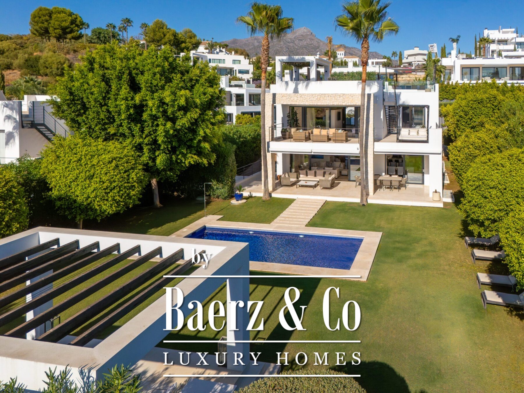 Villa Nueva Andalucia Marbella is an address that resonates with understated luxury and Mediterranean clarity. This villa, set within a prestigious gated community, offers six bedrooms and six bathrooms across 484 m² of thoughtfully composed living space. The plot size of 1,344 m² delivers privacy and scale, accompanied by panoramic mountain, garden, and pool views that shape a serene daily rhythm.