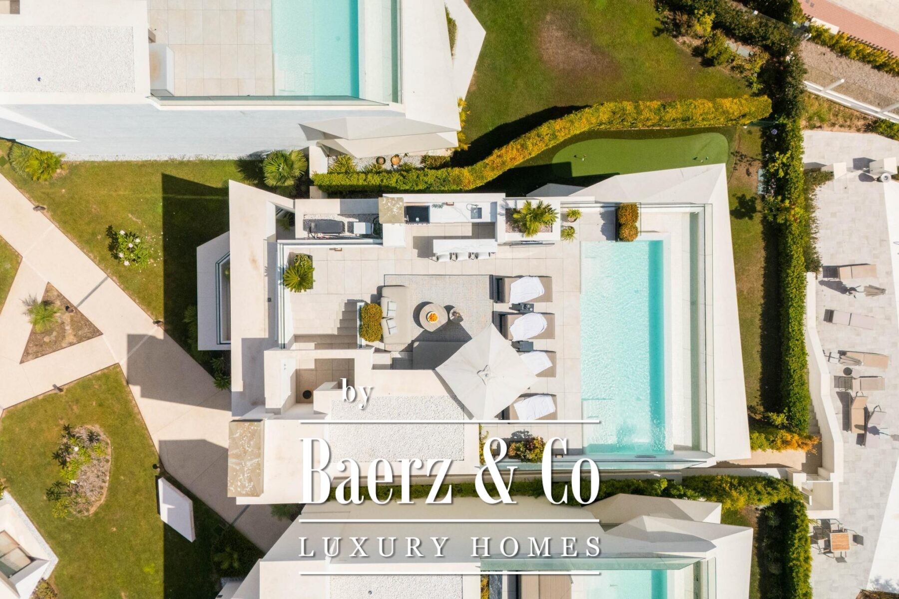 Contemporary villa Nueva Andalucía Marbella offers refined architecture and exceptional privacy within a prestigious gated community in the heart of Marbella. This four bedroom, four bathroom residence is a study in contemporary design, defined by bold geometric lines and a palette of natural materials in calm, neutral hues. The villa spans 665 m² on a 665 m² plot, ensuring a sense of space without compromise.