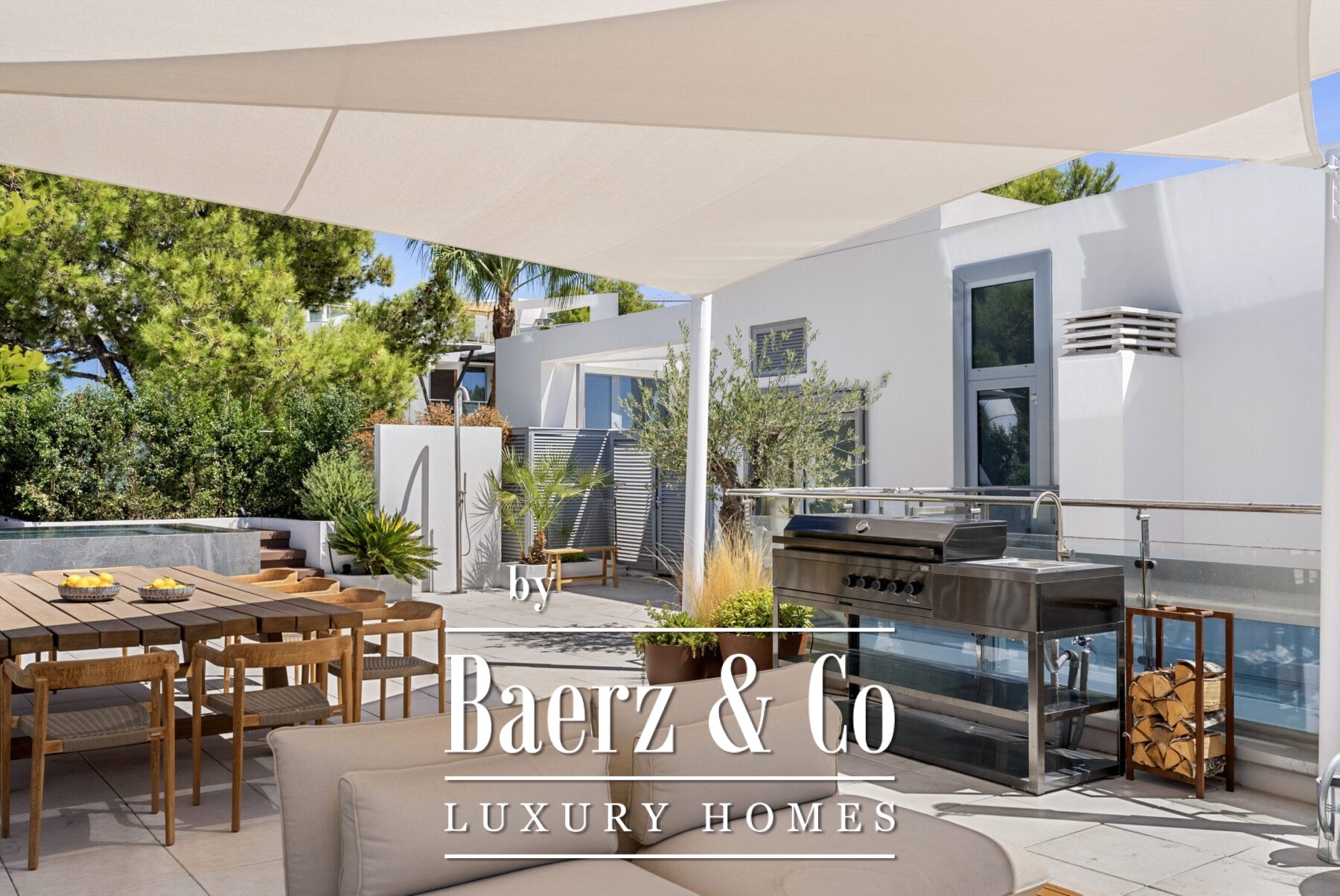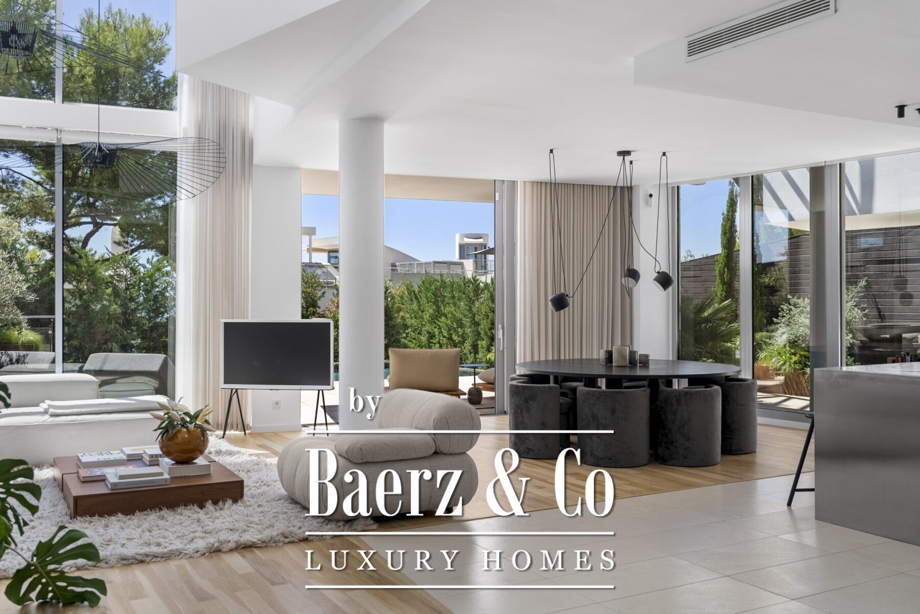 Within its 500 m² of living space, this home is composed for those who value discreet luxury. Three bedrooms and three bathrooms are complemented by bespoke finishes and a sequence of spacious, light filled interiors. The private wine cellar, walk in closet, and utility room reflect a commitment to thoughtful detail, while the golf simulator room transforms effortlessly into a home cinema or dedicated space for leisure.
