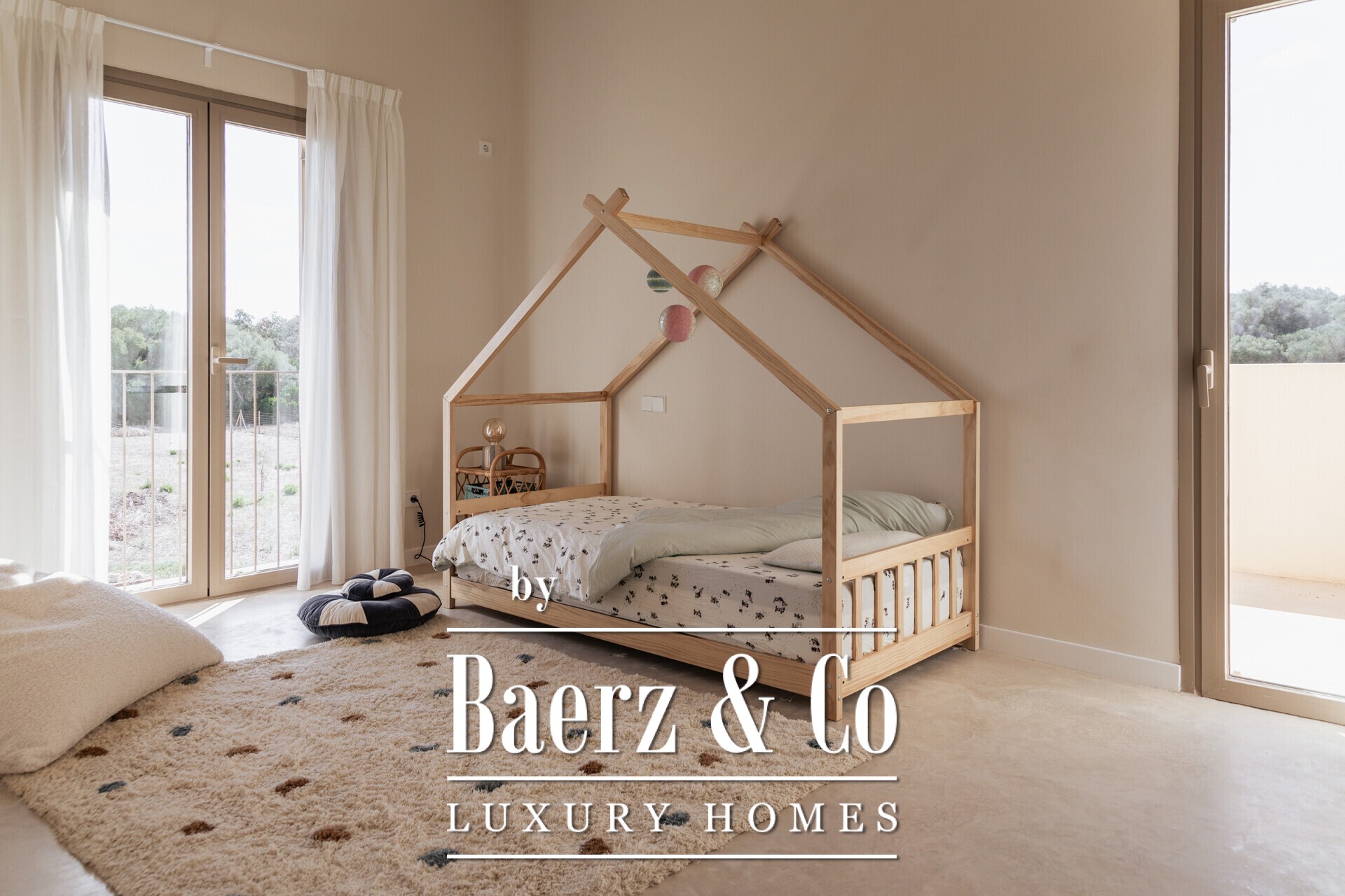 Ascend to the 135 m² first floor, a peaceful retreat where you will find three bright and airy bedrooms, each boasting its own private en-suite bathroom. The master bedroom features a spacious walk-in cabinet and an exclusive private terrace where you can enjoy serene views to the landscape and the village.