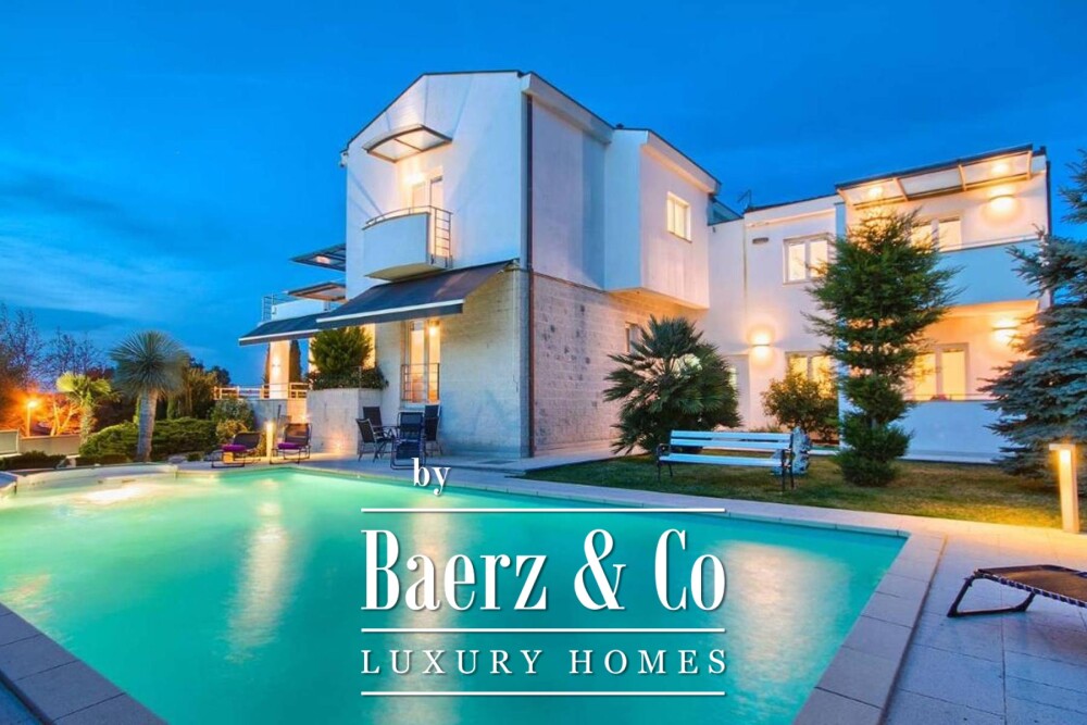 Villa Pješčana Uvala Pula stands in one of the most desirable enclaves of Pula, distinguished by its landscaped gardens and sandy beaches with commanding vistas of the open sea. This villa occupies an elevated 980 m² plot, presenting 350 m² of living space across two thoughtfully designed floors.