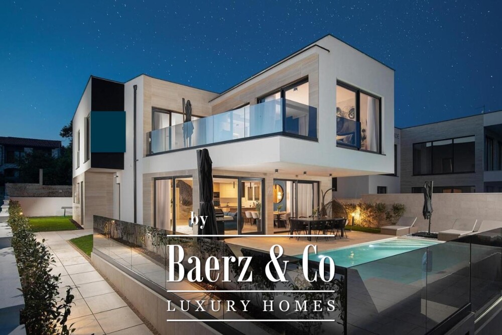 Townhouse Medulin stands in the centre of Medulin, Croatia, a property where 340 m² of contemporary living space and direct access to the Adriatic converge. This townhouse Medulin is only a few meters from the water, placing you within reach of the luminous edge of southern Istria. Set on a plot of 503 m², the residence unfolds across three levels, each designed for clarity, comfort, and connection to the outdoors.