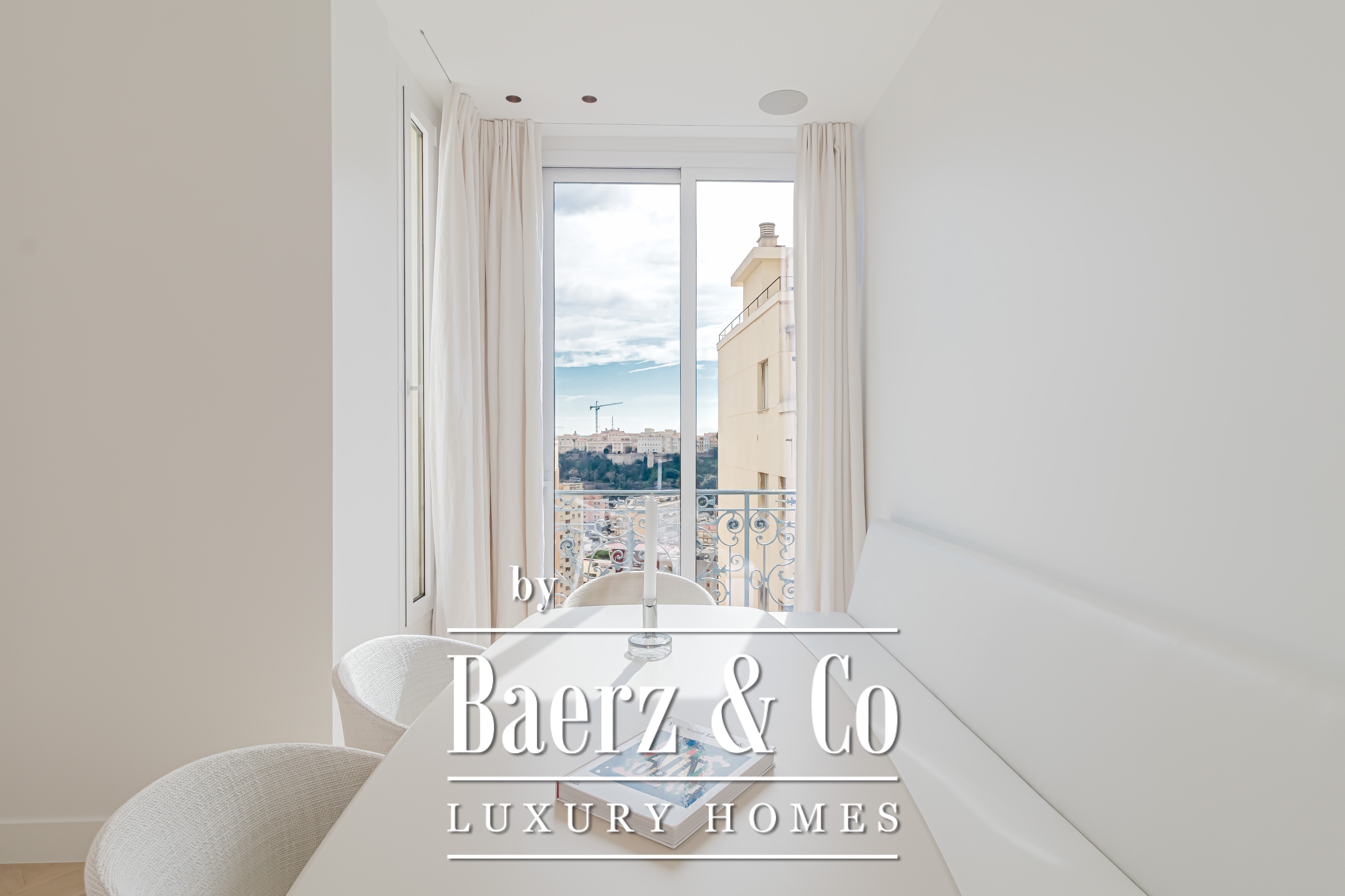 Additional features include a spacious renovated cellar, reinforced security door and safe, wireless SONOS sound, a wine fridge, and a Japanese Bluetooth toilet, contributing to a refined modern lifestyle. The apartment is offered fully furnished and is available immediately. With annual service charges of €3,500, this Monaco apartment near Port and La Condamine invites comfortable, discreet living in a prime location.