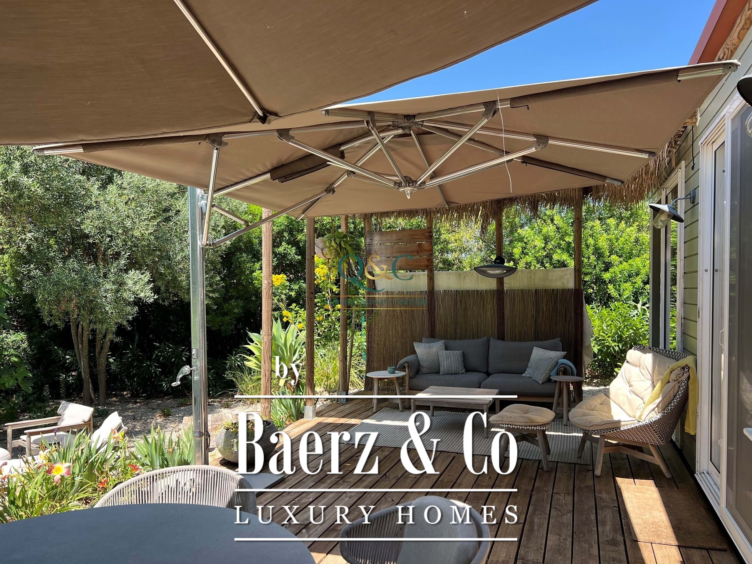 Among the many highlights is a purpose-built Spa House, complete with a treatment room, steam/shower room, infrared sauna, and a kitchenette. Glass walls fully open to the gardens, and electronic privacy blinds along with a retractable roof system create a luxurious, flexible environment for wellness and relaxation.