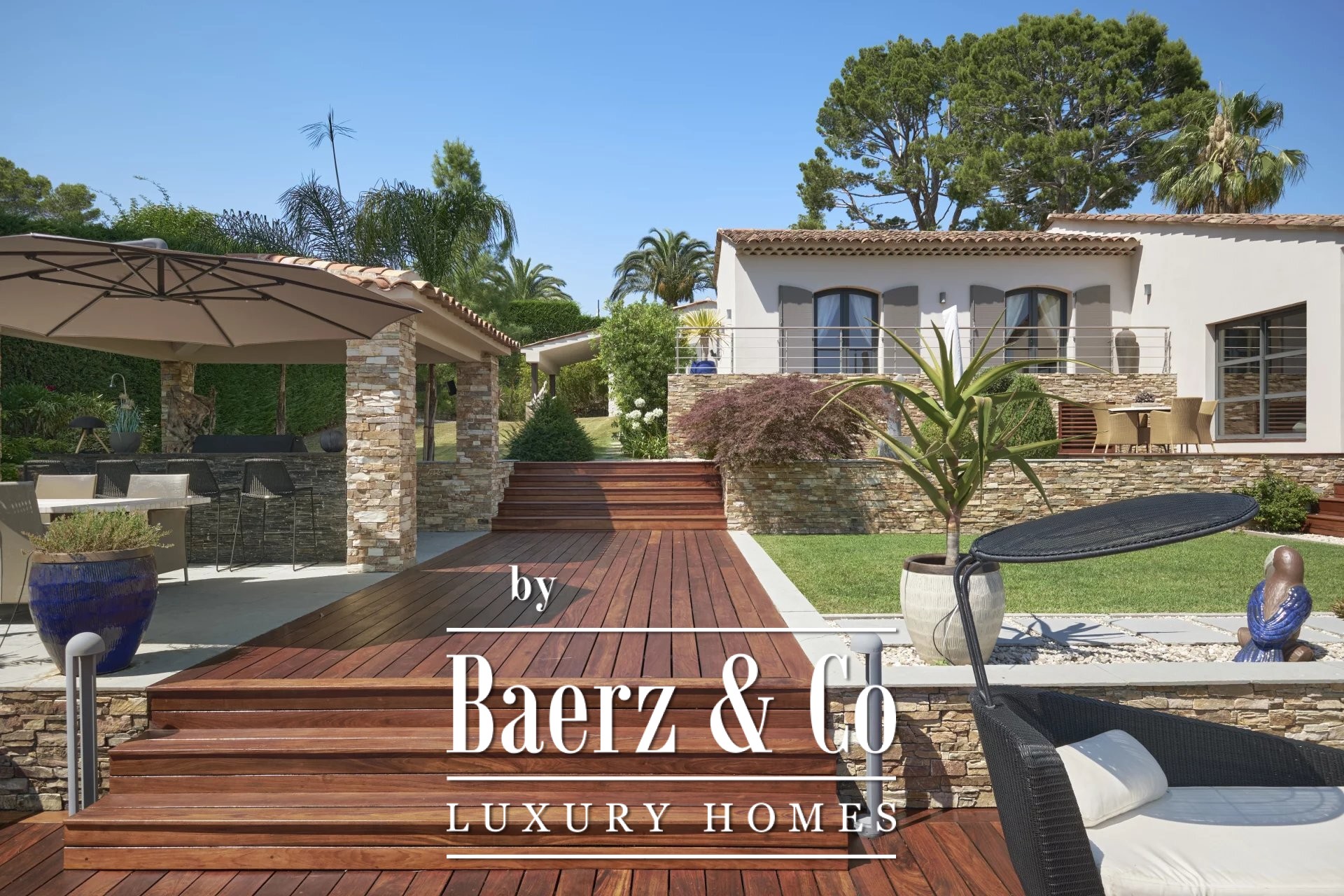 Villa Mougins reveals a refined union of Provençal tradition and modern design, set in the heart of the region’s most exclusive estate. This villa Mougins showcases a hillside outlook, with a superbly landscaped 2,640 m² garden where every detail is curated for understated enjoyment. Covered terraces extend graciously from the living spaces, framing views of the surrounding nature and infusing each room with gentle Mediterranean light.