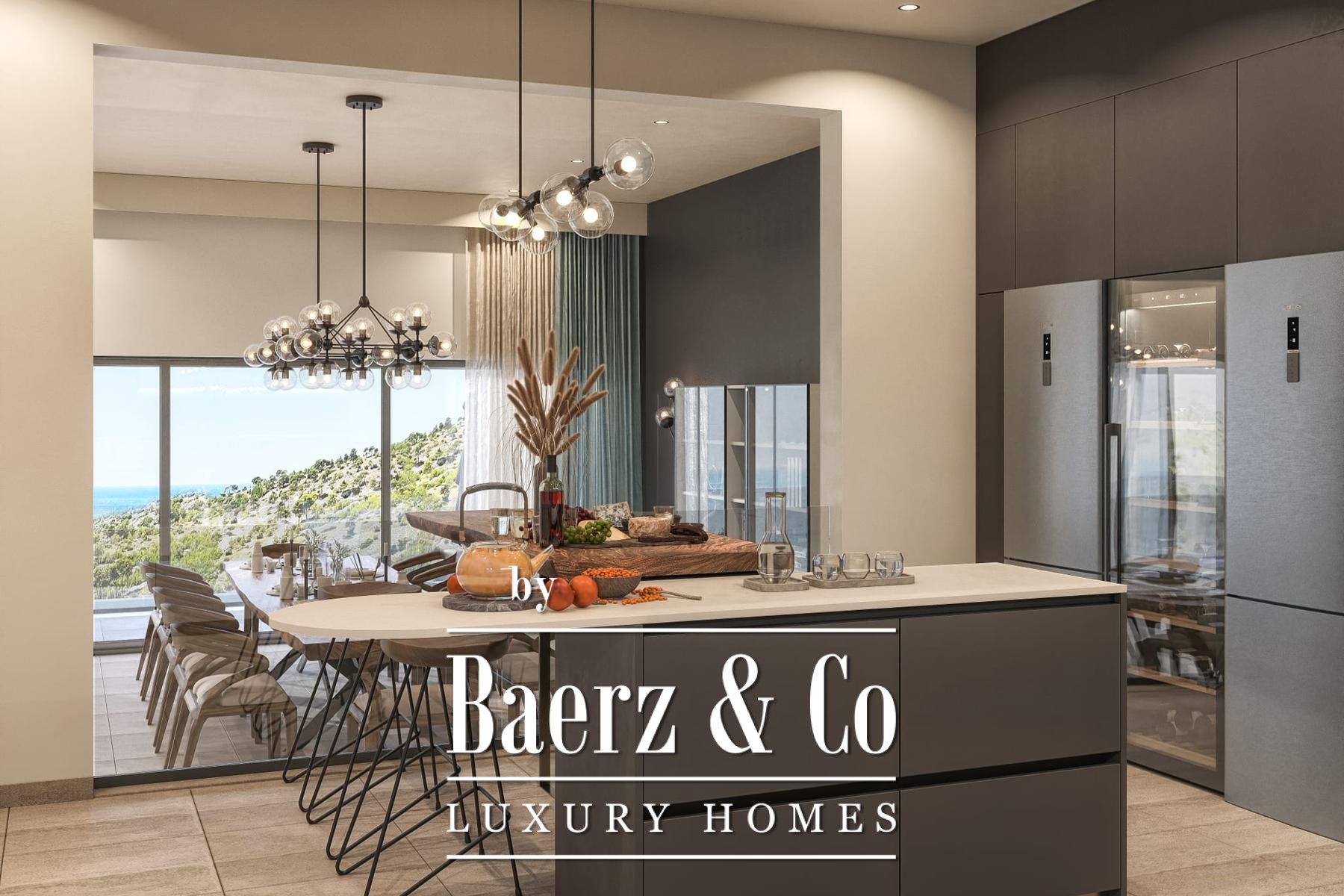 The main residence offers six bedrooms and six bathrooms, a thoughtfully proportioned kitchen, dining area, and an elegant living room. Natural rhythms of openness and comfort extend throughout the home, complemented by an attic space of 250 m² for additional flexibility. Outside, a heated 50 m² infinity pool meets views across the Adriatic, while an equal-sized indoor pool, sauna, jacuzzi, and gym provide year-round relaxation. A garage, game room, and laundry further the sense of considered luxury.