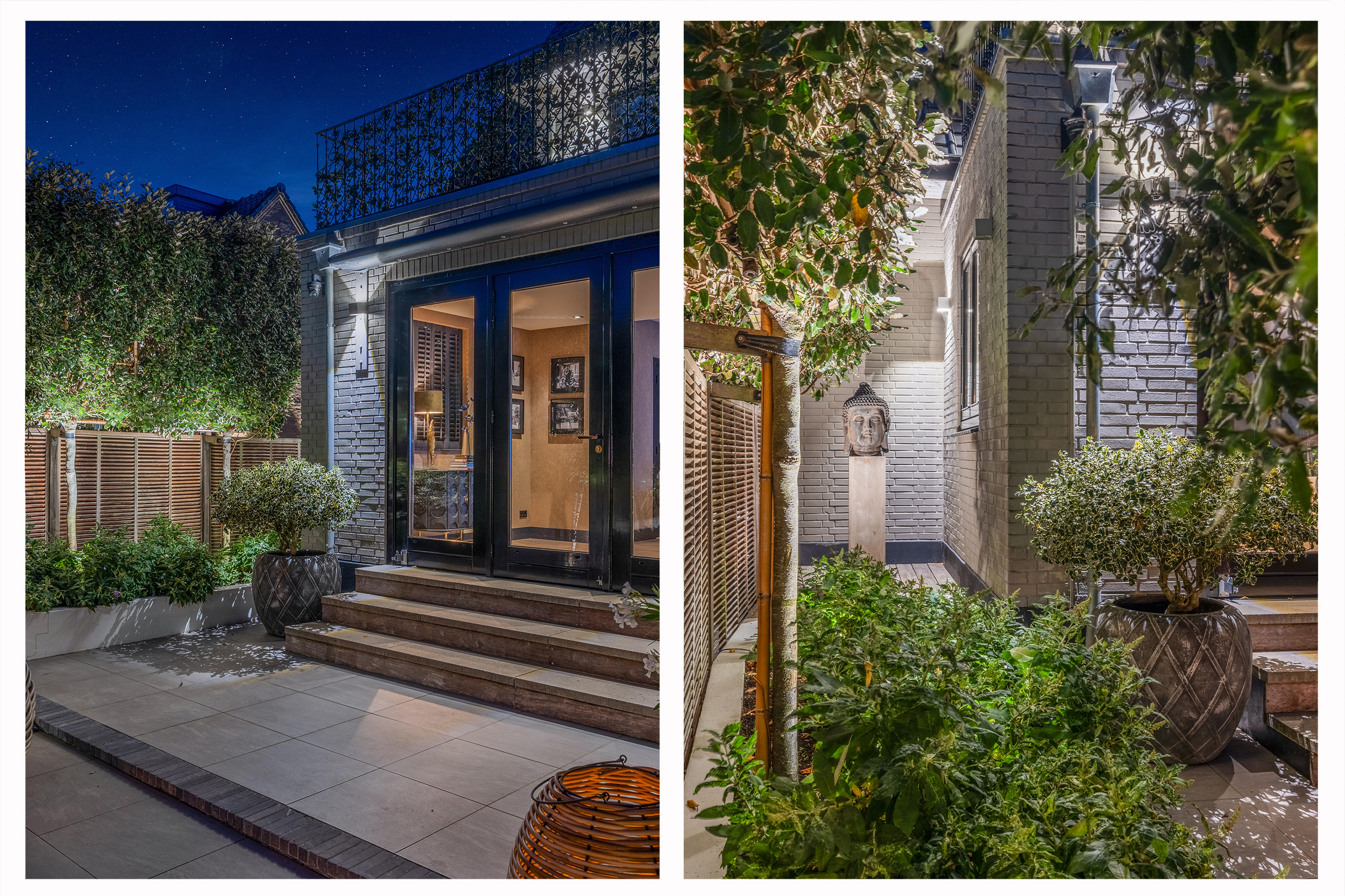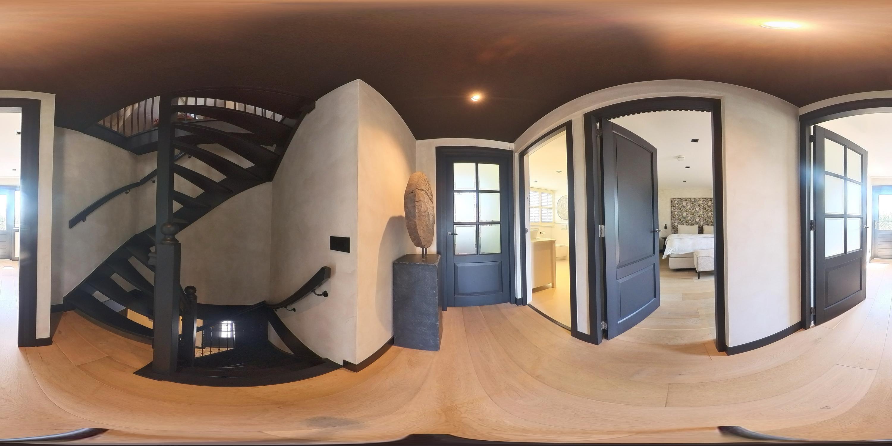 De begane grond biedt volop ruimte om te leven, te koken en te ontspannen. De inrichting is harmonieus, met aandacht voor detail – van de perfecte verlichting tot aan de luxueus uitgevoerde afwerking van vloeren, wanden en ingebouwde elementen. Alles draagt bij aan een sfeer van ingetogen luxe.
