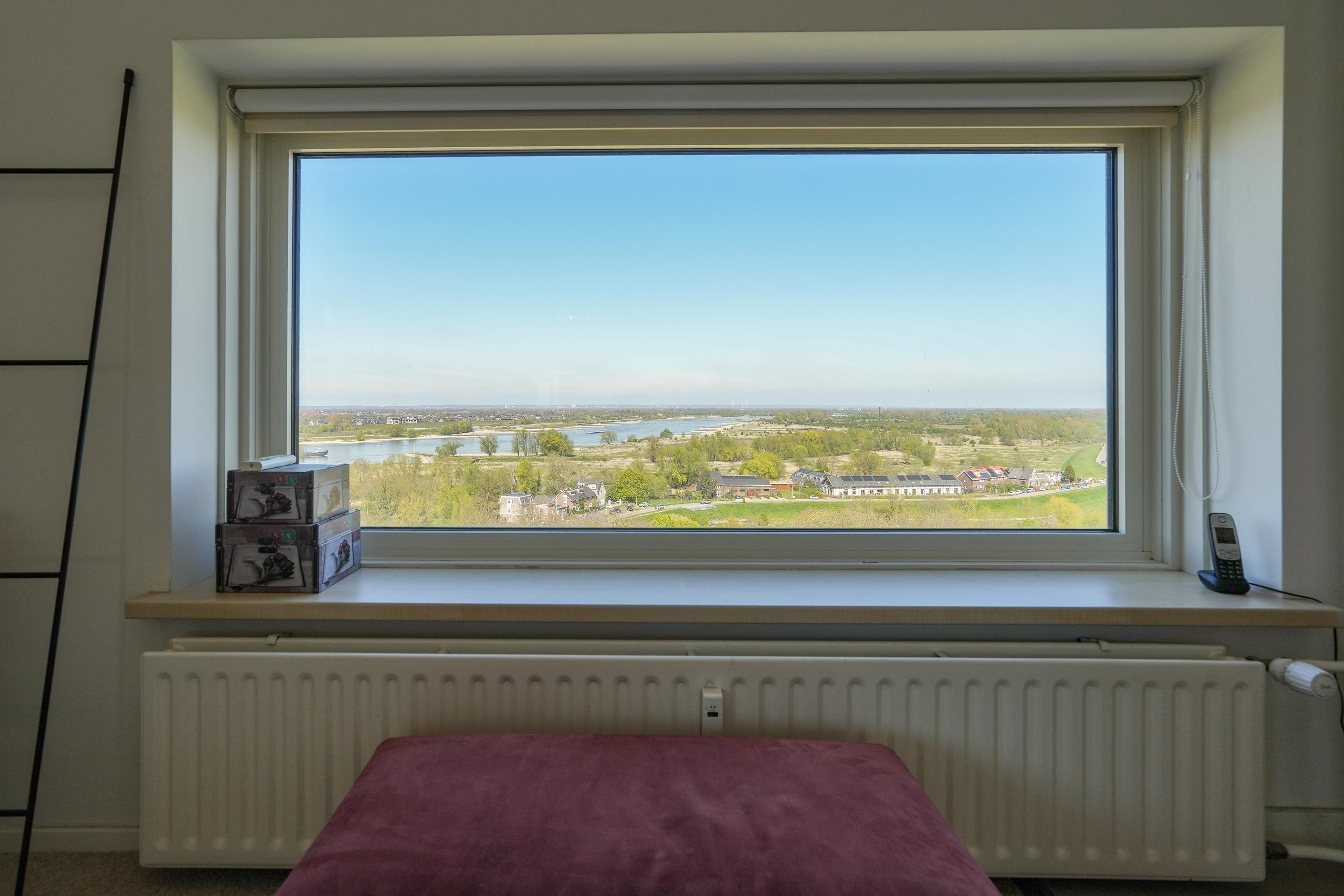 With sweeping views over the River Waal, the Ooijpolder and the skyline of Nijmegen, this exceptional apartment offers a living experience that is rarely found. This bright residence is located on the sixth floor of a well-maintained building with a total of nine storeys, on the edge of the highly sought-after Nijmegen-Oost district. The combination of generous space, spectacular views and an excellent location creates an extraordinary living experience, further enhanced by the comfort of a central yet pleasant setting.