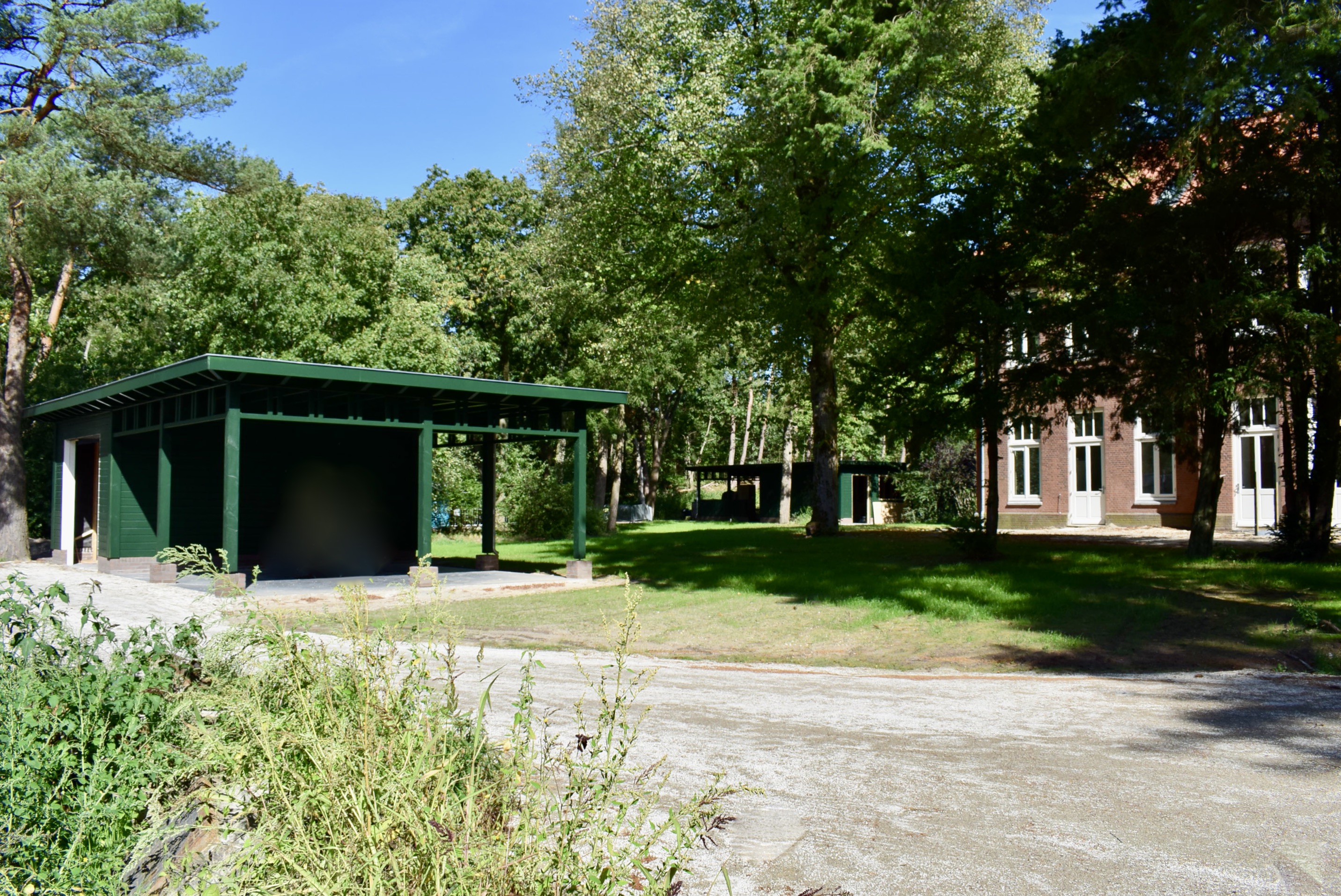 - Parkeergelegenheid: nieuwe houten garage (circa 24m²), dubbele carport (circa 35m²) en nog twee extra parkeerplaatsen.