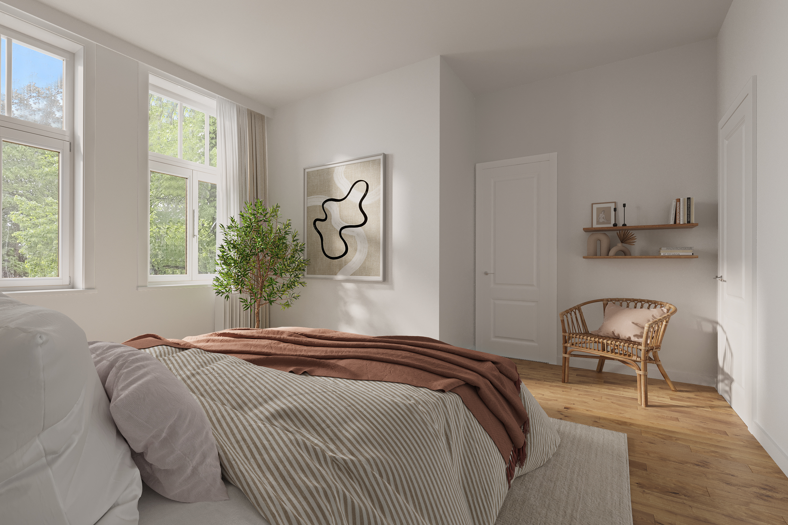 Op de Veluwe, omringd door weelderig groen en oude bomen, staat het Boschhuis: een voormalig sanatorium uit 1925, recentelijk getransformeerd in zeven exclusieve bosvilla’s. De geliefde vooroorlogse bouwstijl, met zijn kenmerkende symmetrie, grote overstekken en monumentale gevels, is zorgvuldig behouden en gerestaureerd.