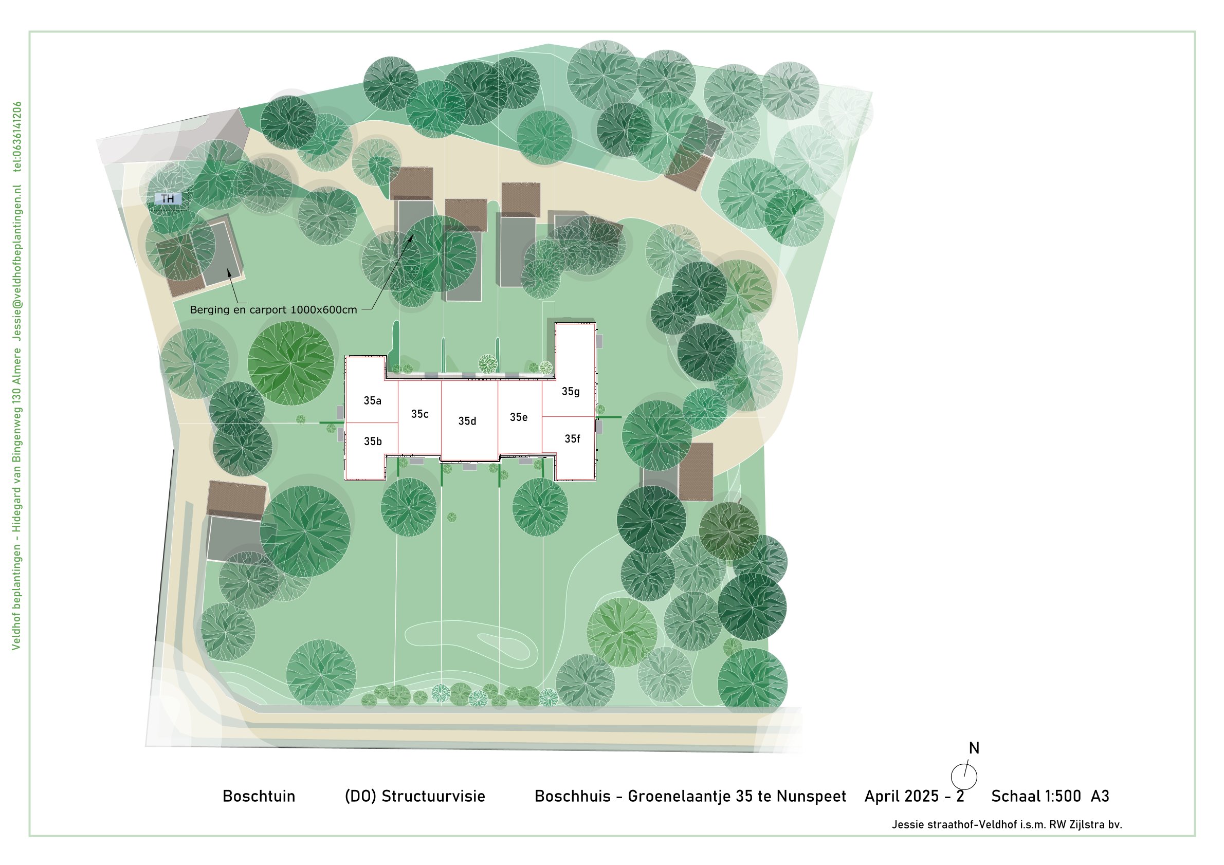 - Parkeergelegenheid: nieuwe houten garage (circa 24m²), dubbele carport circa 35m²) en nog twee extra parkeerplaatsen.