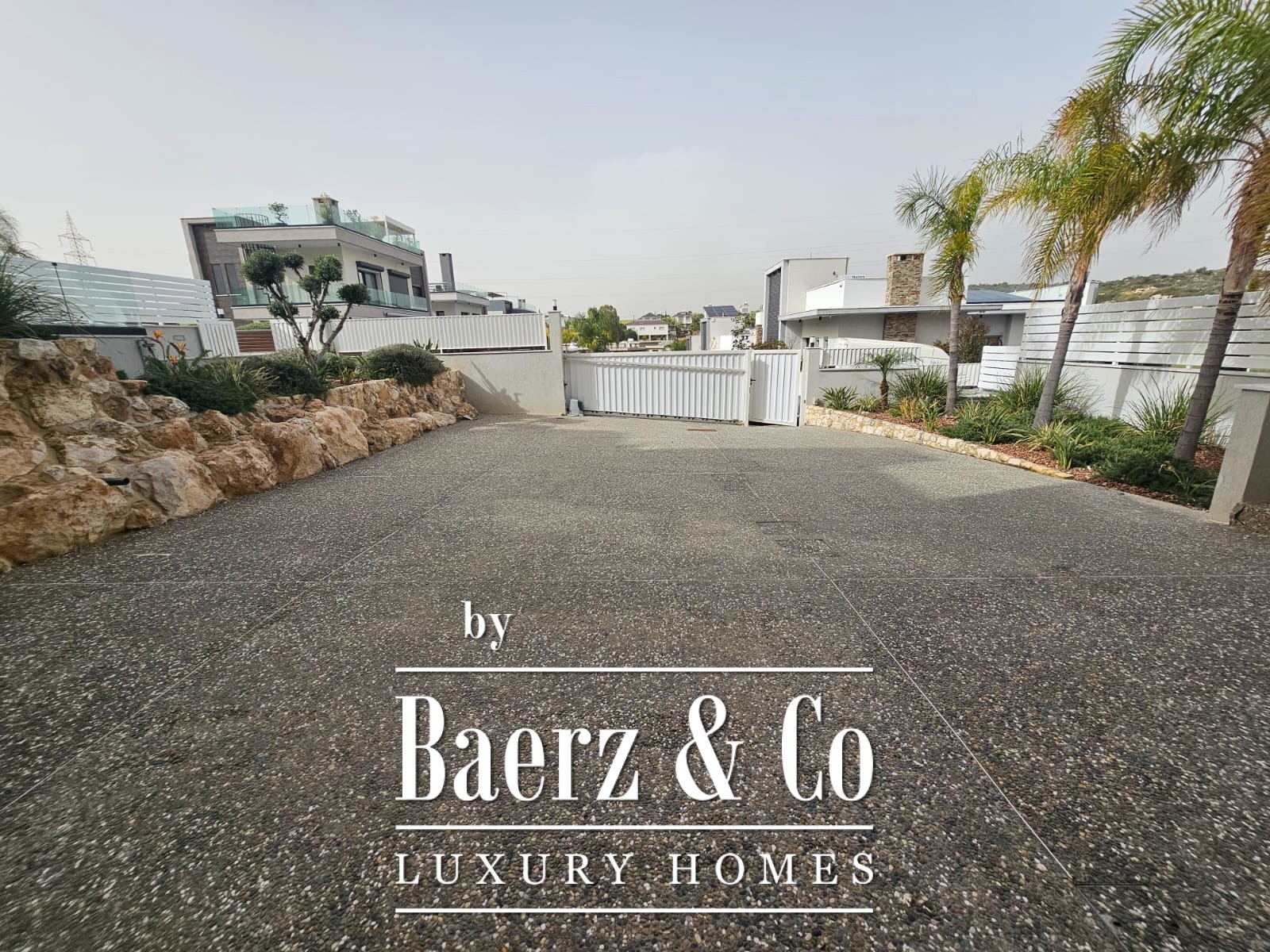 Outdoors, the landscaped garden frames a private swimming pool and BBQ area, complemented by a poolside shower and toilet. Eight parking spaces, ample storage, a security door, and a dedicated service room complete the offering. This villa defines high-end living for those drawn to the unique panorama and tranquility of Parekklisia.