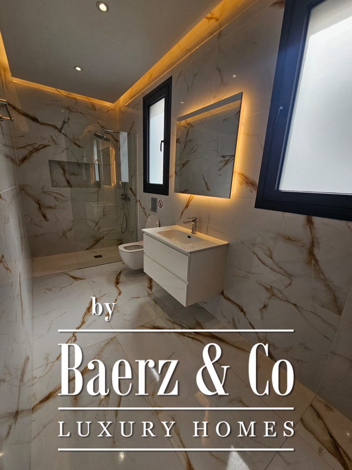 Set within a landscaped 888 sq.m. plot, the villa invites residents to savour quiet moments by the private swimming pool, host gatherings in the sunlit BBQ area, or simply relax in the exceptional living spaces. The layout includes four bedrooms, three bathrooms, and two guest WCs, while a service room adds further convenience. Interiors are finished to exacting standards, featuring large-format tiles, aluminium double-glazed windows for thermal and sound insulation, and a fully integrated underfloor heating and air conditioning system.