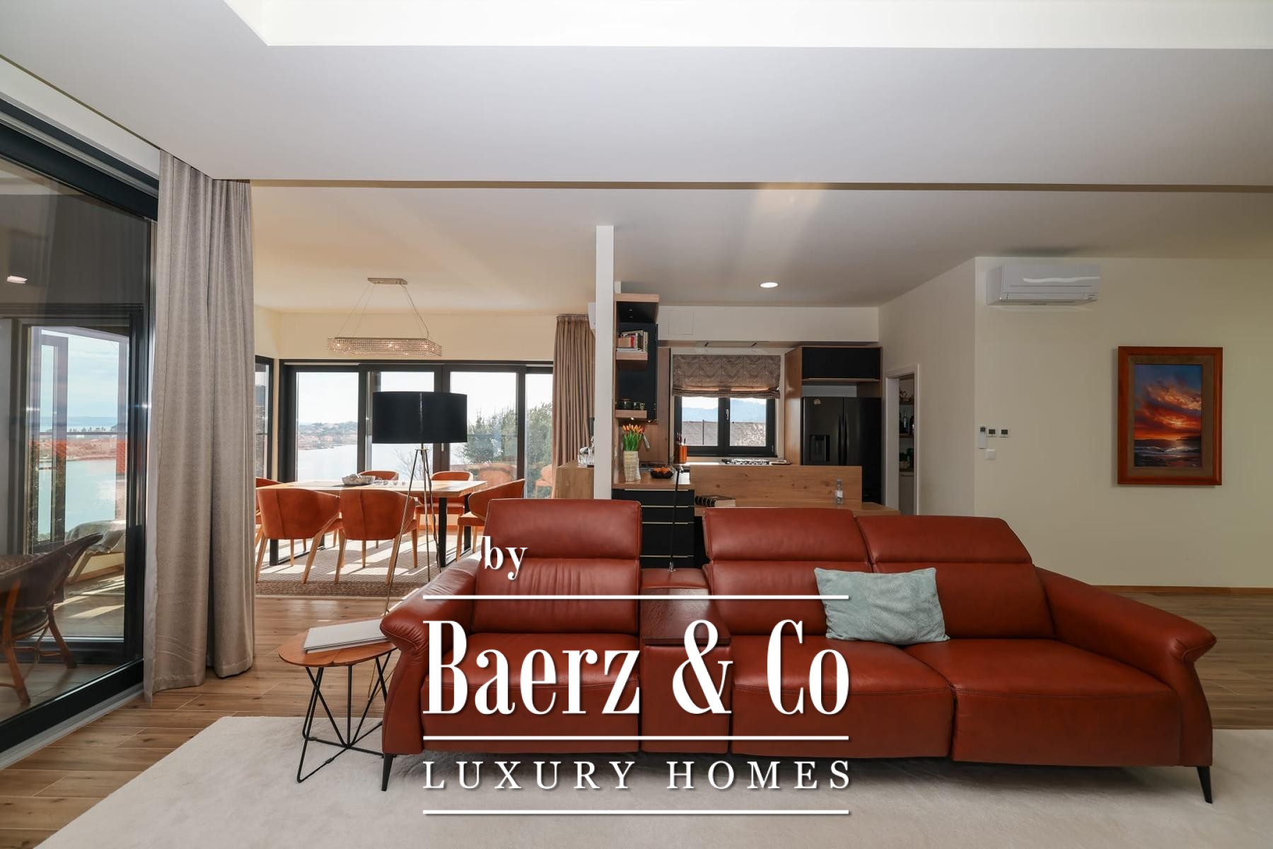 Villa Preko invites a quiet dialogue between refined architecture and the natural contours of Ugljan's coastline. This villa Preko offers 399 m² of living space, positioned on a generous 1,061 m² plot. Designed with clarity and purpose, the ground floor reveals a welcoming entrance, a guest suite, a bathroom, and an expansive covered terrace of 60.4 m². A sauna, summer kitchen with a chimney, and garage for two vehicles infuse a spirit of relaxed sophistication.