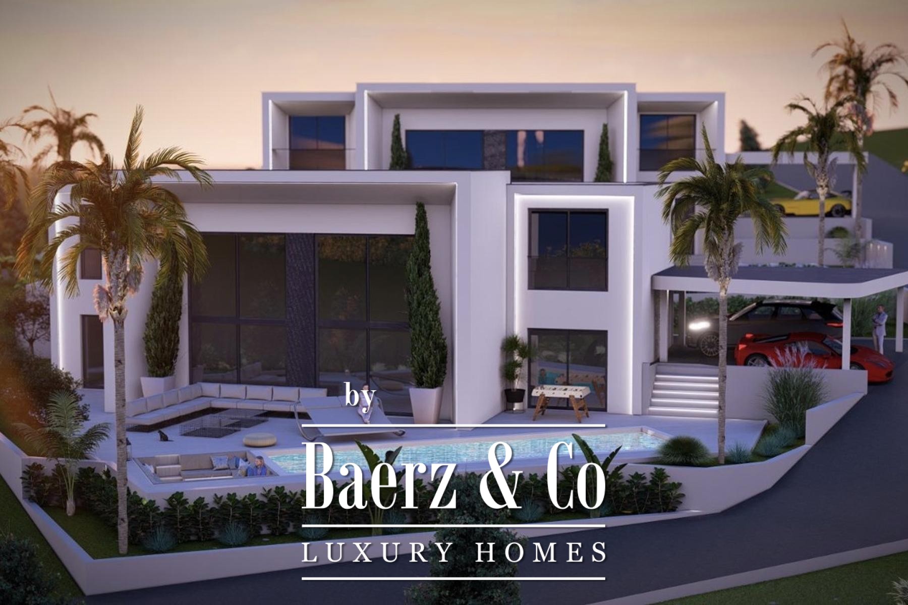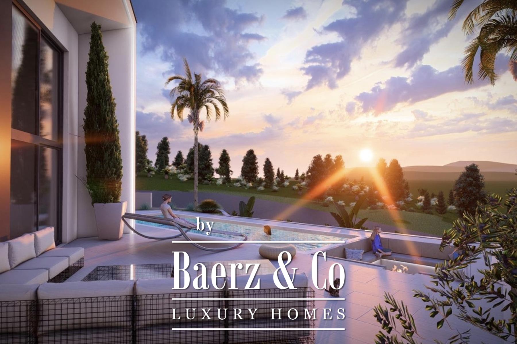 The villa’s exterior articulates outdoor living at its finest. Veiled by Mediterranean vegetation, the cascading garden frames a heated hydromassage pool of 38 square meters, a sun deck, and a lounge area anchored by a fire pit and barbecue. Covered parking for three cars, a summer kitchen, and discreet smart home systems further elevate daily comfort.