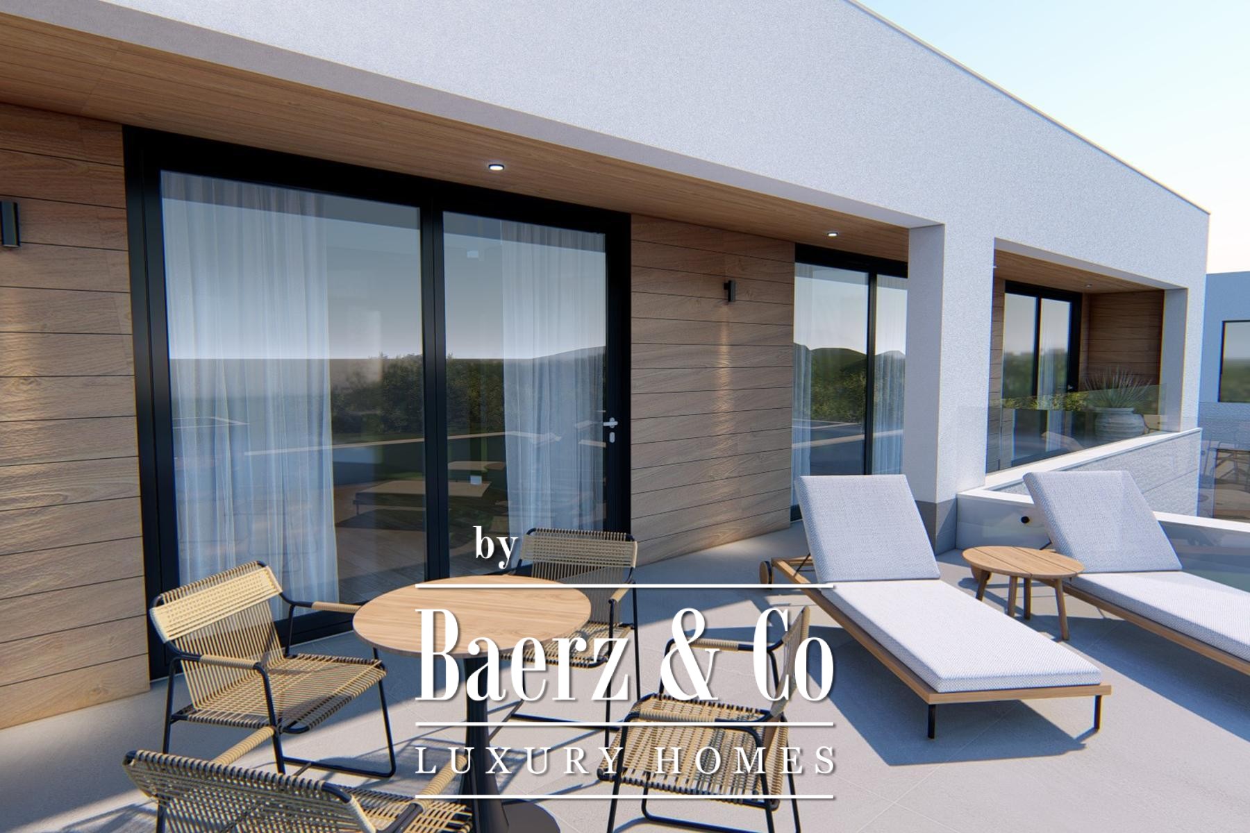 Modern villa with sea view Primošten is an architectural statement of restrained luxury and thoughtful living. With a living area of 314 m² set across two floors, this newly built residence rests on a generous 898 m² plot, balancing openness and privacy. On the ground floor, an expansive living space with kitchen and dining area flows onto a covered terrace with barbecue, providing seamless indoor-outdoor connection. The ground floor also offers a bedroom with private bathroom, guest toilet, and a storage area. Outdoors, a heated swimming pool anchors the garden, complemented by an auxiliary building with sauna and covered terrace, inviting calm and relaxation.