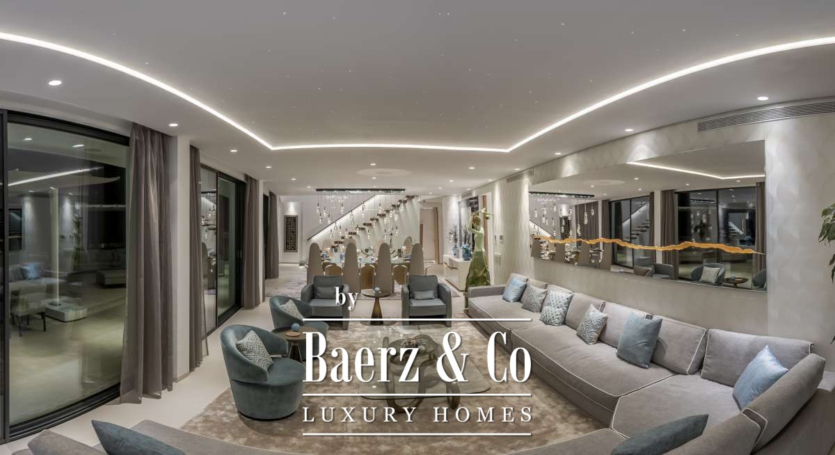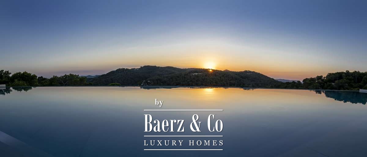 The SurroundingsLocated in the exclusive, gated community of Roca Llisa, one of Ibiza’s most desirable addresses, the stylish Villa Las Dos Lunas offers sweeping sea views and breathtaking mountain scenery. Stunning sunsets illuminate the landscape, while the setting provides total privacy and tranquility. Ibiza Town, the ports and the airport are only minutes away.The Villa and LayoutThe villa showcases contemporary elegance with refined design and warm, inviting interiors. Expansive triple-glazed sliding doors open the living areas toward the terraces, creating a seamless indoor-outdoor connection. The main living area features a sophisticated fireplace adding comfort and style.The modern designer kitchen includes Miele appliances, a walk-in refrigerator and