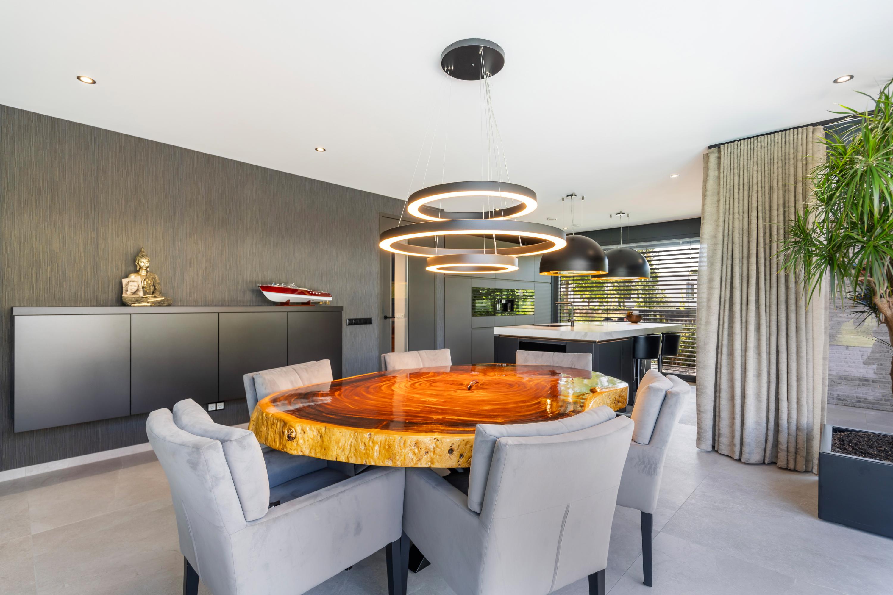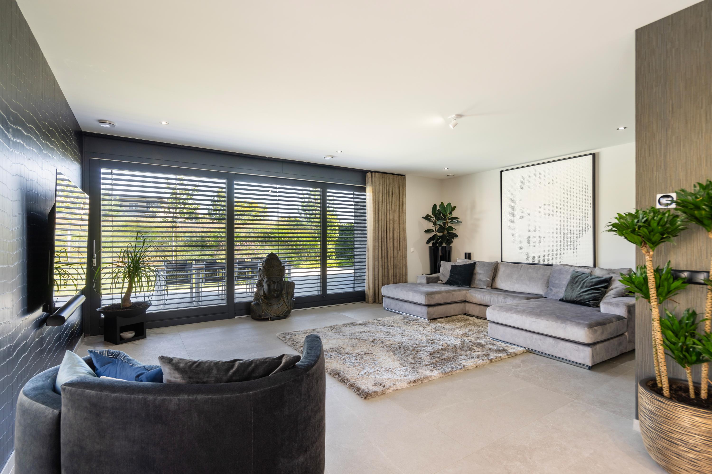 There is a seamless flow between the luxurious kitchen with cooking island, the dining area, and the living room — perfect for entertaining guests and creating a warm, inviting atmosphere. The ground floor is a fantastic place to spend quality time with family and friends. From every angle, you enjoy beautiful views of the garden. And on sunny days, simply open the sliding doors to create a wonderful indoor?outdoor living experience.