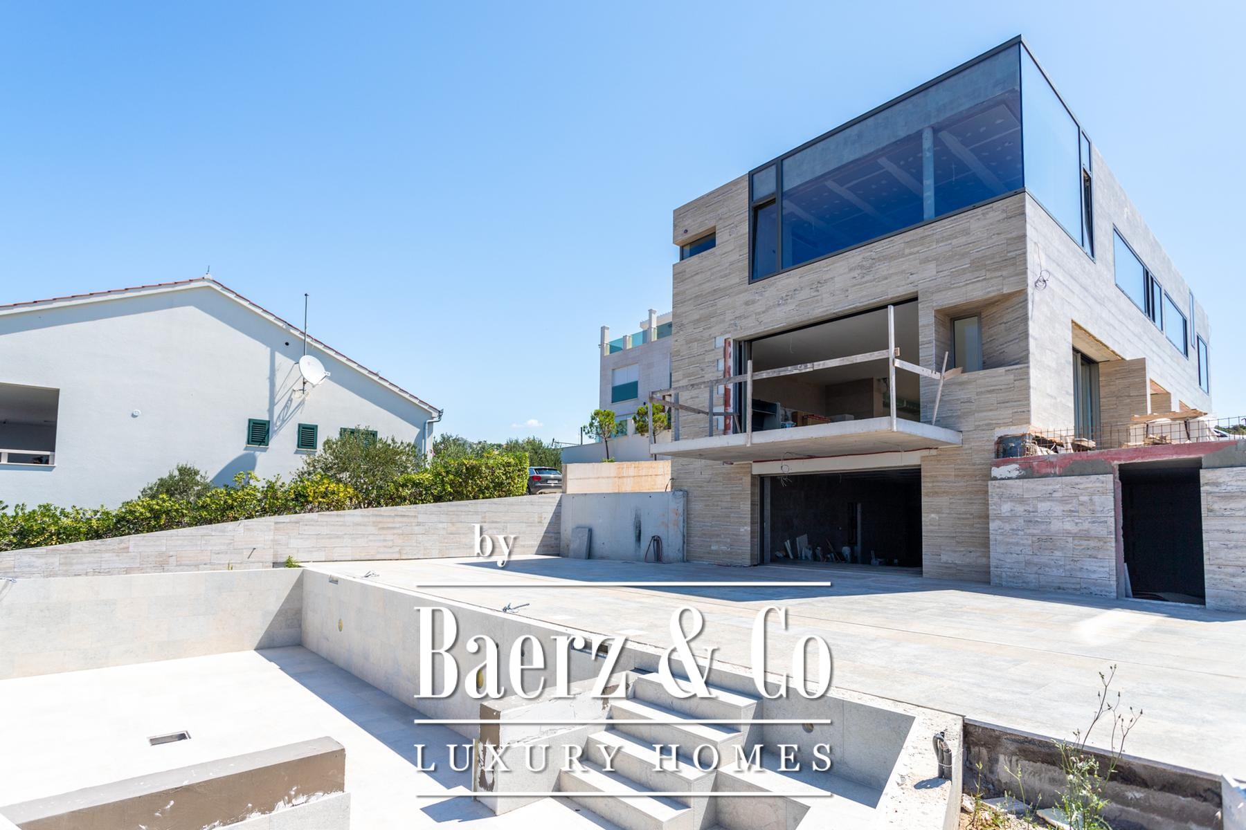 with bathroom and wardrobe, laundry room. It also has five parking spaces, a barbecue area with an outdoor kitchen and dining area.The villa is under construction and the work is expected to be completed in decembar 2024. High-quality materials will be used in the construction of the villa, stone, tiles, first-class American walnut parquet, Grohe sanitary ware, Mitsubishi multi VRF system air conditioning throughout the villa, and the furniture will be modern, designer, inspired by a contemporary approach, and designed to fit into the natural environment of the space. The villa will also have a modern elevator of the Otis brand, made according to the dimensions of the villa.For all other information on request.