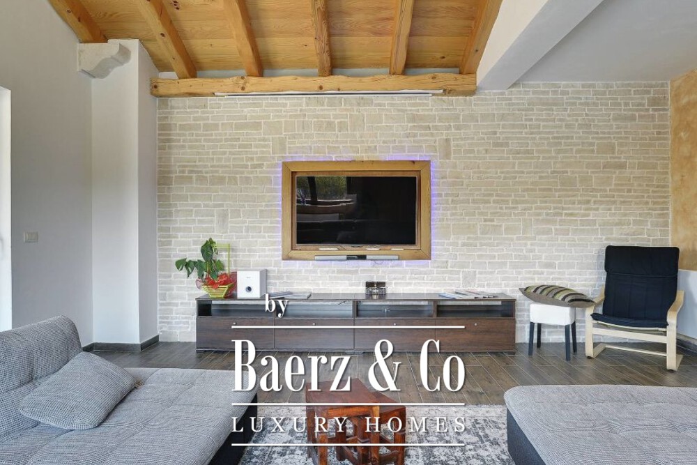 On the lower level, leisure is shaped by a dedicated games area with billiards and table tennis, while practical needs are met by a fully equipped laundry room. Outdoors, a 54 m² pool offers a serene focal point for summer days. Set just beyond the road yet shielded by mature greenery, the property balances accessibility with seclusion. Villa Rovinj is situated in proximity to the picturesque village of Rovinjsko selo and seven kilometres from Rovinj itself, placing cultural and culinary richness within easy reach. This villa for sale in Rovinj exemplifies quiet modern living in harmony with the Istrian landscape.
