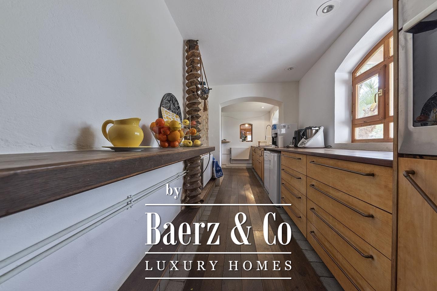 Situated on a plot of over 1000m², the 280m² living space with various terraces and a Mediterranean garden offers plenty of space for family and friends. On the ground floor, there are the living and dining area with fireplace, the spacious Mediterranean kitchen. 4 bedrooms, 3 bathrooms, and a guest toilet are spread over 2 levels.